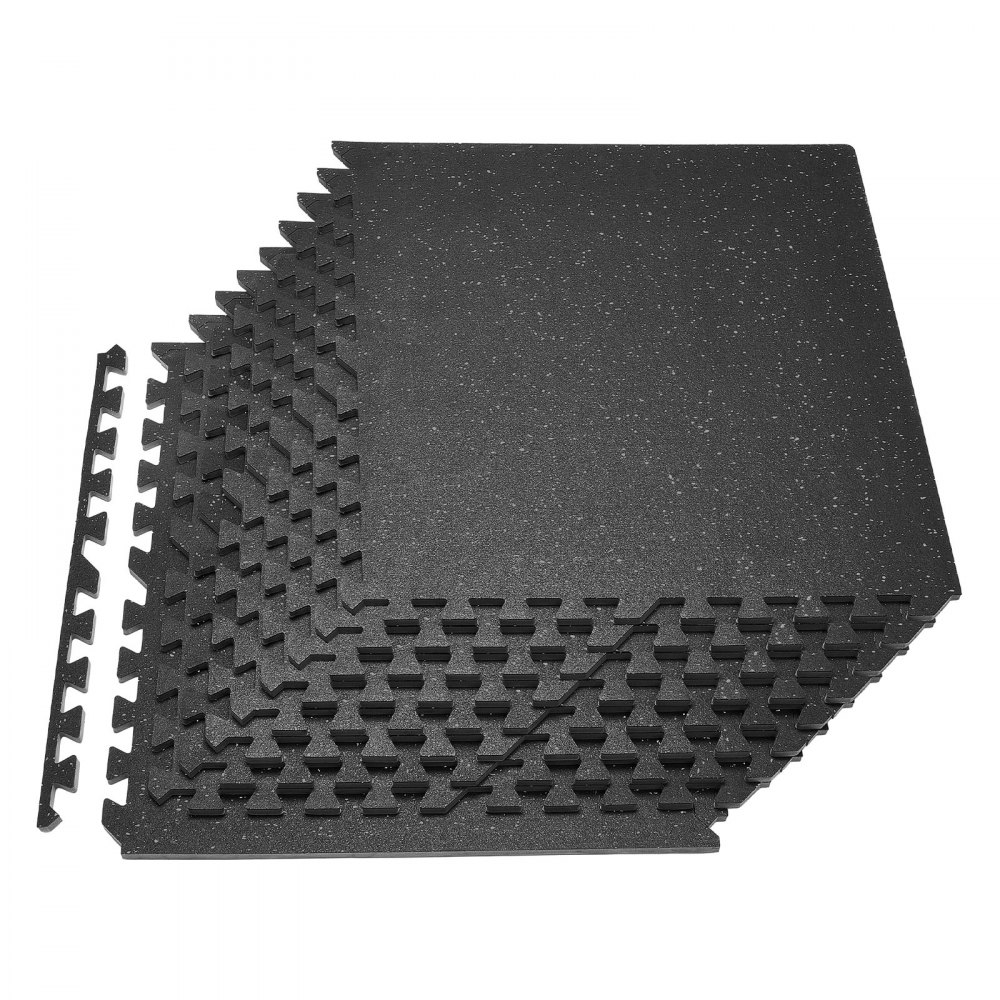 12 x Puzzle Mat Mat ochronna na podłogę 610 x 610 x 14 mm, mata z pianki EVA o wysokiej gęstości, mata fitness z blokadą, mata gimnastyczna, mata sportowa, mata treningowa (czarna) z szarymi kropkami