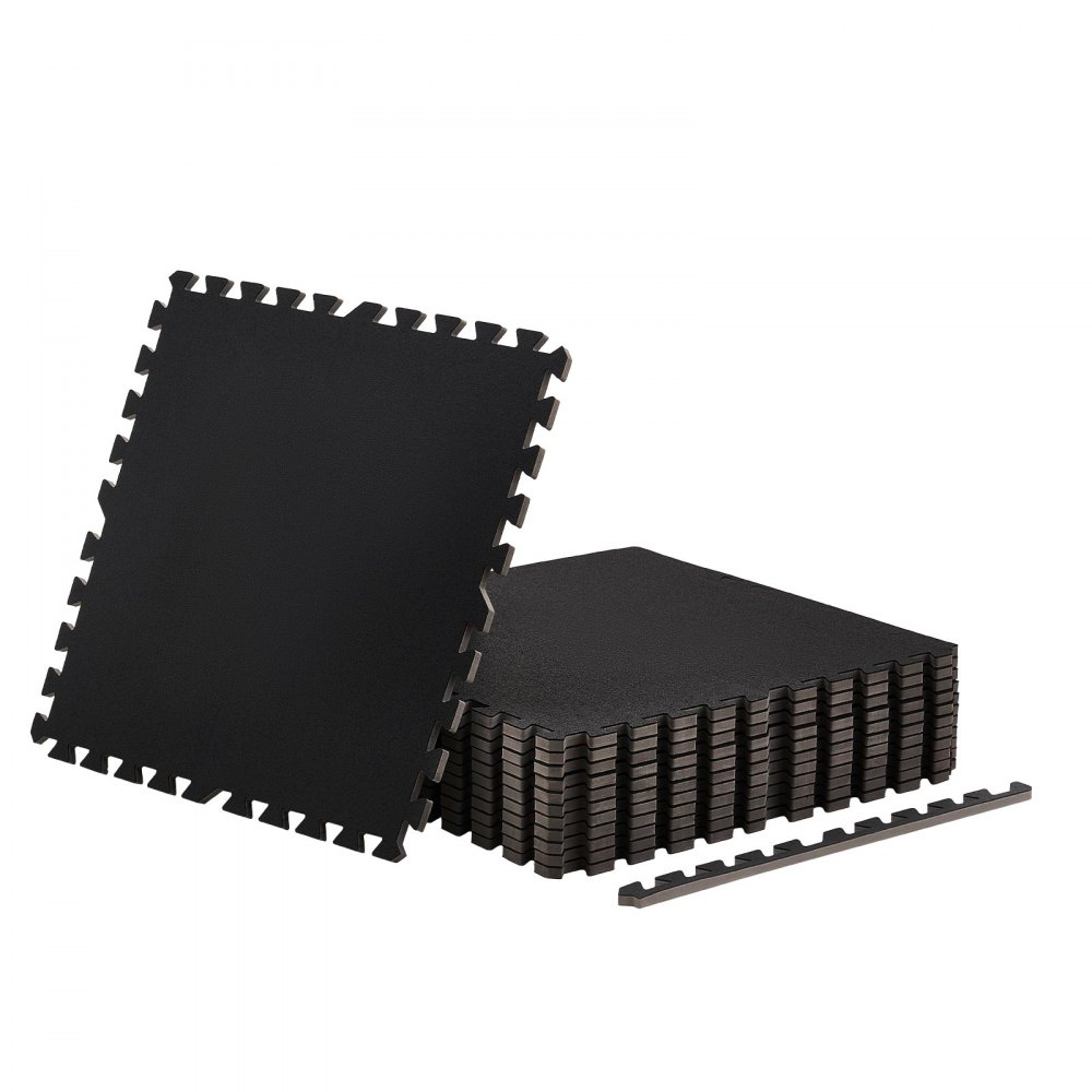 12 x Puzzle Mat Mat ochronna na podłogę 610 x 610 x 14 mm, mata z pianki EVA o wysokiej gęstości, mata fitness z możliwością łączenia, mata gimnastyczna, mata sportowa, mata treningowa, czarna mata do domowej siłowni - Budownictwo i konstrukcje | Galaxy Sklep