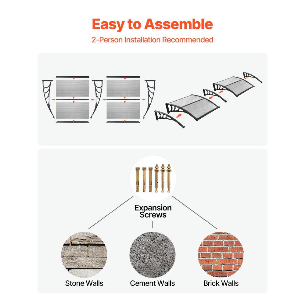 Baldachim VEVOR na drzwi wejściowe 965x1987 mm, daszek dobudowy, daszek dobudowy z odpływem i uchwytem ABS, ochrona przed deszczem, śniegiem i słońcem, daszek z poliwęglanu na werandę i taras, przezroczysty - Budownictwo i konstrukcje | Galaxy Sklep