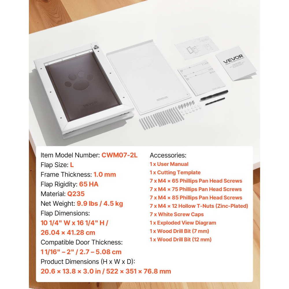 Drzwi dla psa VEVOR (średnie) z podwójnymi klapkami magnetycznymi i metalową ramą, odporne na warunki atmosferyczne, do drzwi wewnętrznych i zewnętrznych, drzwi dla kota, drzwi dla psa, drzwi dla zwierząt, białe, 26,04 x 41,28 cm (szerokość x wysokość)