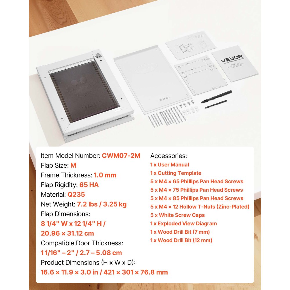 Drzwi dla psa VEVOR (średnie) z podwójnymi klapkami magnetycznymi i metalową ramą, odporne na warunki atmosferyczne drzwi dla kota do drzwi wewnętrznych i zewnętrznych, drzwi dla kota i psa, białe, 20,96 x 31,12 cm (szerokość x wysokość) - Budownictwo i konstrukcje | Galaxy Sklep