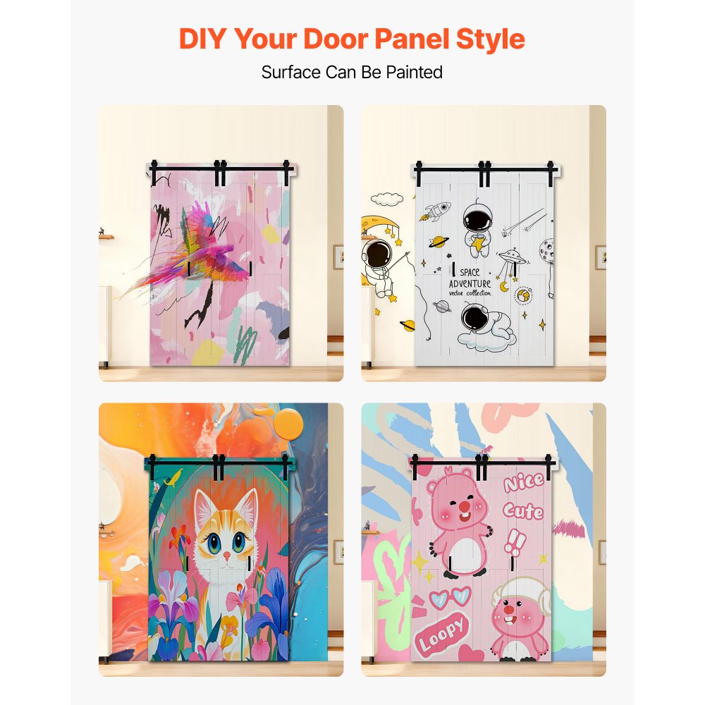 Wszechstronne do różnych pomieszczeń: Te przesuwne drzwi w stylu stodoły są wszechstronne i można je stosować w salonach, kuchniach, sypialniach, łazienkach, garażach i wielu innych miejscach. Oddzielają lub zasłaniają przestrzenie, tworząc jednocześnie czysty, nowoczesny wygląd. Wnoszą styl i elastyczność do każdego wnętrza.