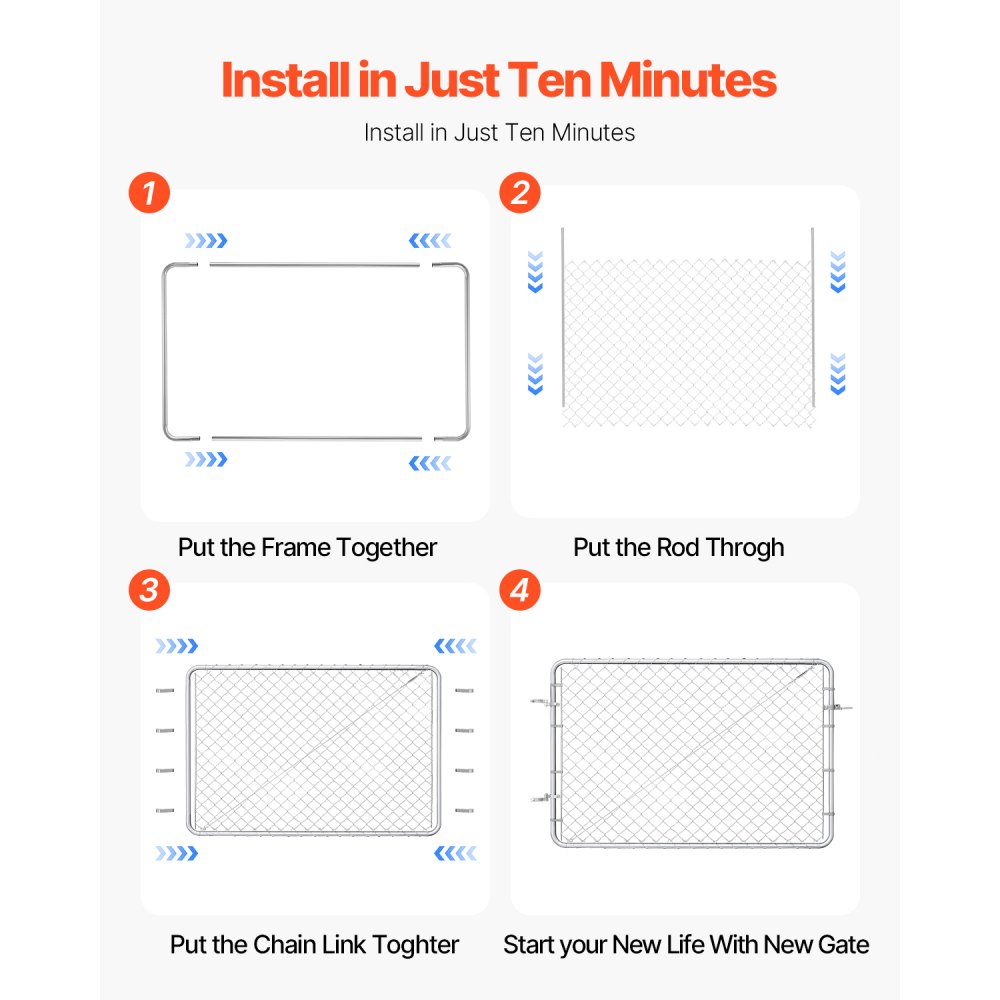 Materiały wysokiej jakości: Rama furtki ogrodzeniowej z siatki łańcuszkowej wykonana jest z trwałej, ocynkowanej stali, co gwarantuje wyjątkową trwałość i odporność na rdzę w każdych warunkach atmosferycznych.
