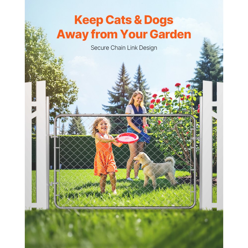 Furtka ogrodowa, 183 x 122 cm, regulowana bramka ogrodzeniowa z ogniwami łańcuszkowymi, pasuje do otworów w bramach ogrodzeniowych o wymiarach od 61 do 183 cm (szer.) x 183 cm (wys.), brama ogrodzeniowa do gospodarstwa, słupki nie są dołączone
