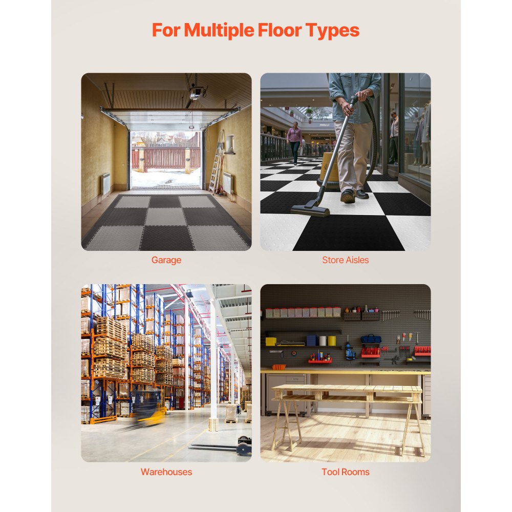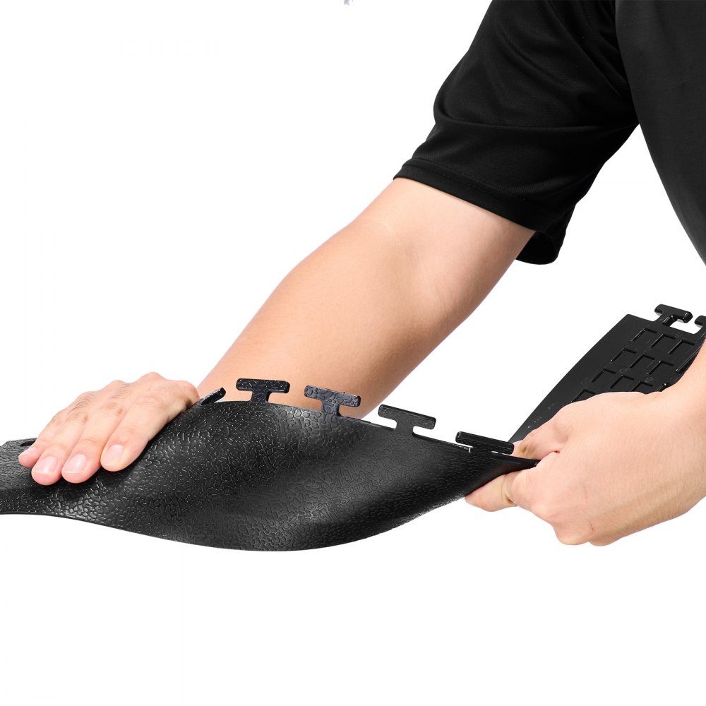 Ochrona krawędzi mat podłogowych: Zestawy listew krawędziowych chronią płytki podłogowe z tworzywa PVC firmy VEVOR do garaży, redukując ich rozdzielanie, przesuwanie, zwijanie się oraz gromadzenie się kurzu lub wody.