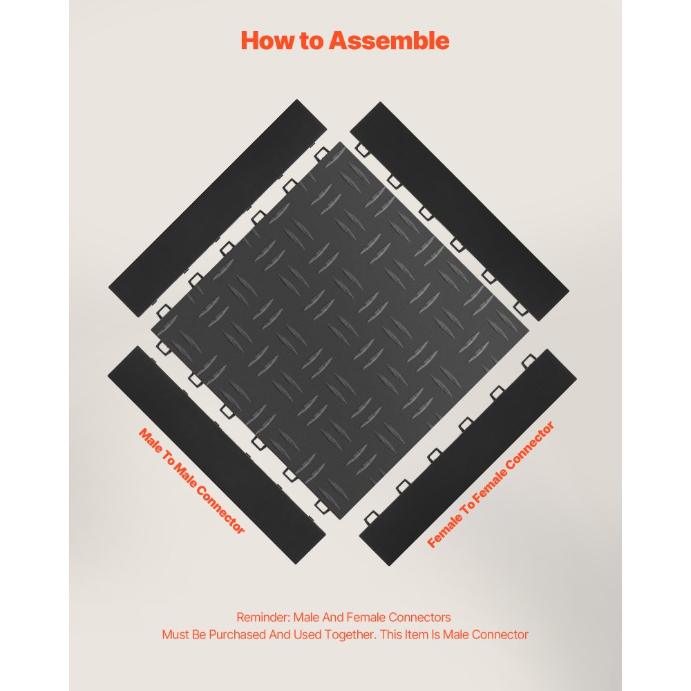 Listwa krawędziowa do garażu VEVOR, męska, zestaw 15 elementów, modułowe listwy krawędziowe do garażu wykonane z polipropylenu, kompatybilne wyłącznie z ulepszonymi matami garażowymi 6-Lock firmy VEVOR, czarne