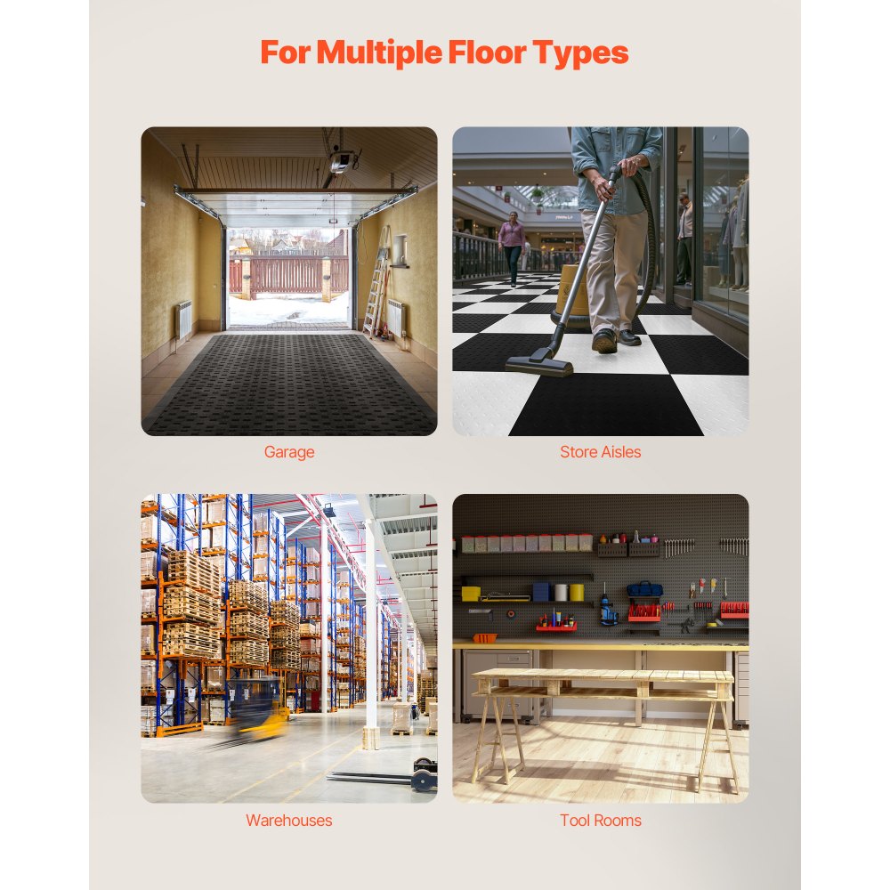 Ochrona krawędzi mat podłogowych: Te zestawy pasków krawędziowych chronią maty podłogowe do garażu 6-Lock ulepszone dzięki zastosowaniu VEVOR PP, dzięki czemu zmniejszają one rozwarstwianie się, przesuwanie, zwijanie i gromadzenie się kurzu lub wody.