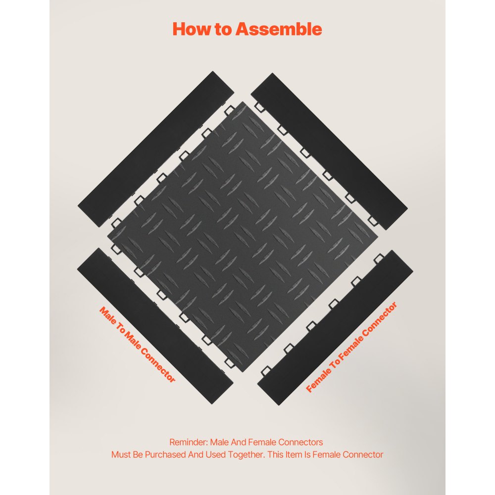 Listwa krawędziowa podłogi garażowej VEVOR, żeńska, zestaw 15 elementów, modułowe listwy krawędziowe podłogi garażowej z PP, kompatybilne wyłącznie z ulepszonymi matami garażowymi 6-Lock firmy VEVOR, czarne