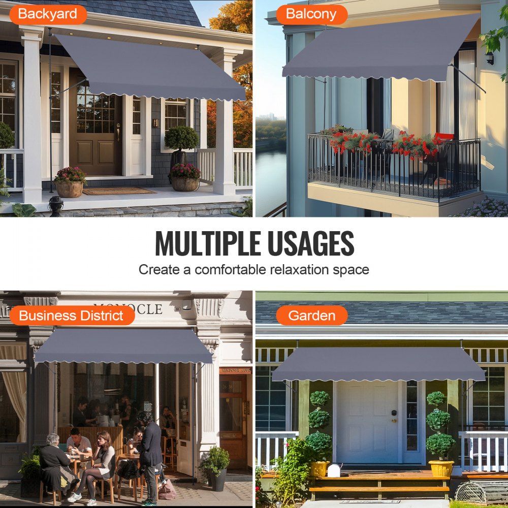 Markiza balkonowa VEVOR z korbą, 400 x 120 cm, markiza przeciwsłoneczna, zadaszenie tarasu Sunsetter Deck, wysokość regulowana od 218 do 309 cm, markiza na taras/balkon/ogród, szara - Budownictwo i konstrukcje | Galaxy Sklep