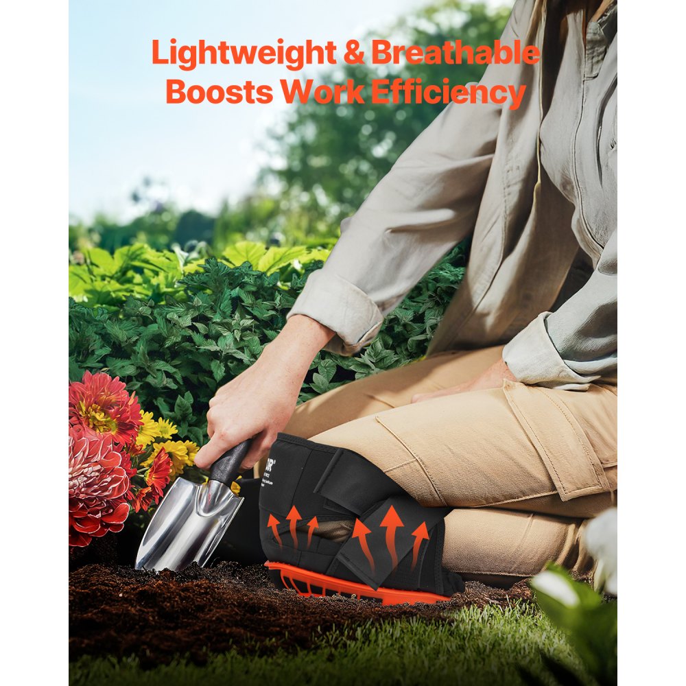 Oddychający materiał: Oddychający materiał, z którego wykonane są te ogrodnicze nakolanniki, pomaga rozproszyć ciepło i utrzymać kolana suchymi, zapewniając komfort nawet w upalne dni.