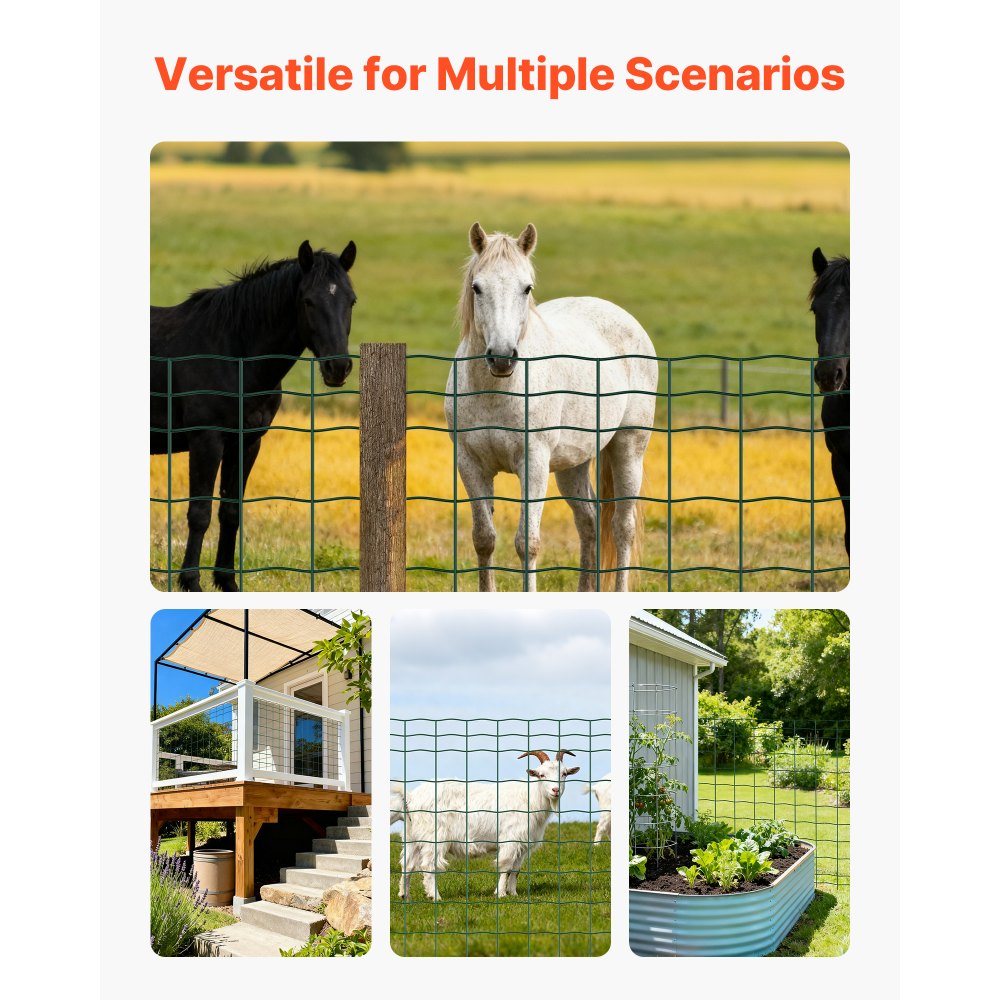 Ogrodzenie ogrodowe VEVOR, 1 x 20 m, siatka druciana (2,1 mm), ocynkowane ogrodzenie z drutu stalowego dla bydła, świń i owiec, ogrodzenie dla zwierząt hodowlanych pokryte winylem do wybiegów dla zwierząt, siatka klatkowa, ogrodzenia ogrodowe, zielone - Budownictwo i konstrukcje | Galaxy Sklep