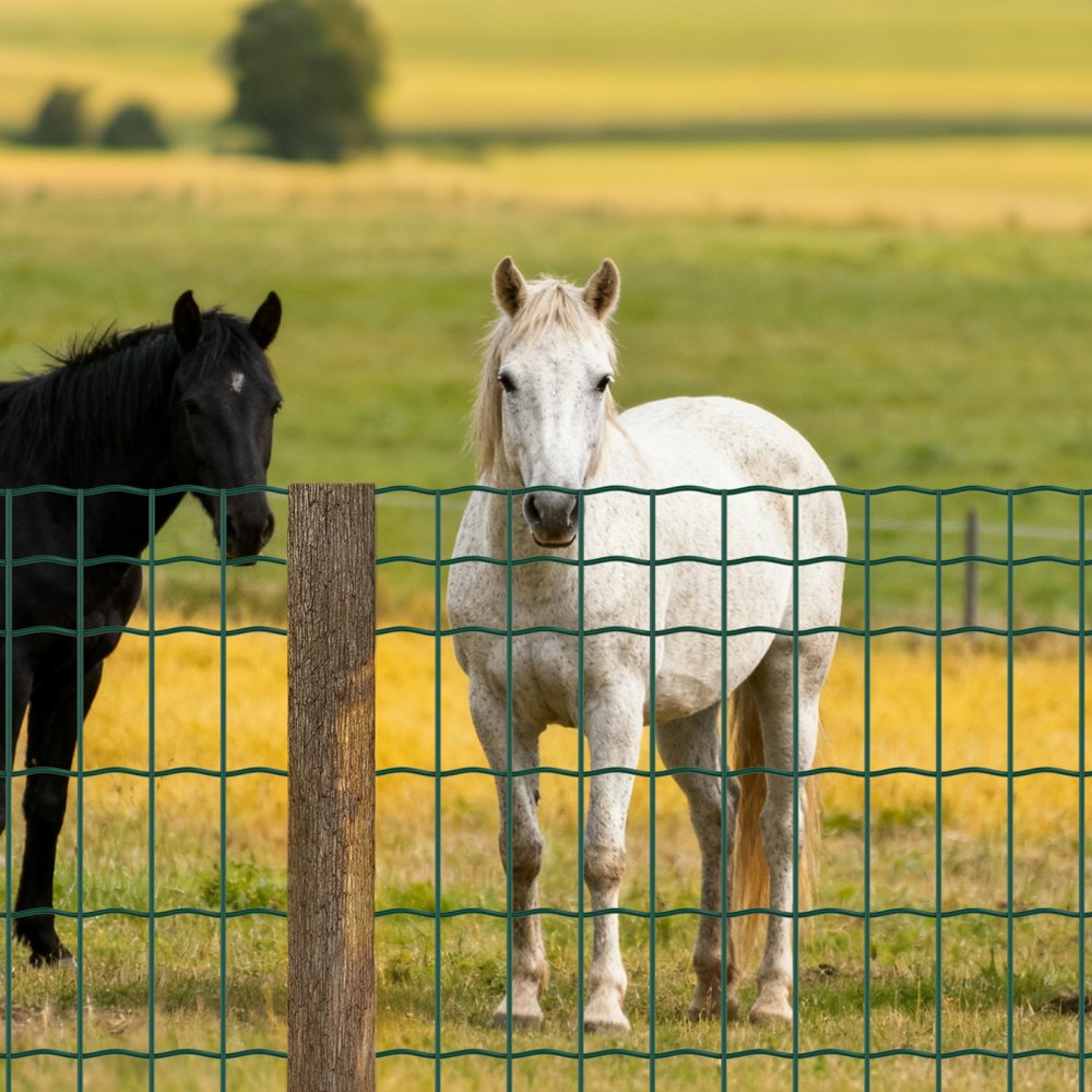 Wysokiej jakości powłoka: Wytrzymały, ocynkowany drut stalowy z wysokiej jakości, zieloną powłoką winylową. Siatka druciana w rolce zapewnia podwójną ochronę przed rdzą i zwiększoną odporność na warunki atmosferyczne, dzięki czemu ogrodzenie jest odporne na słońce i deszcz przez długi czas.