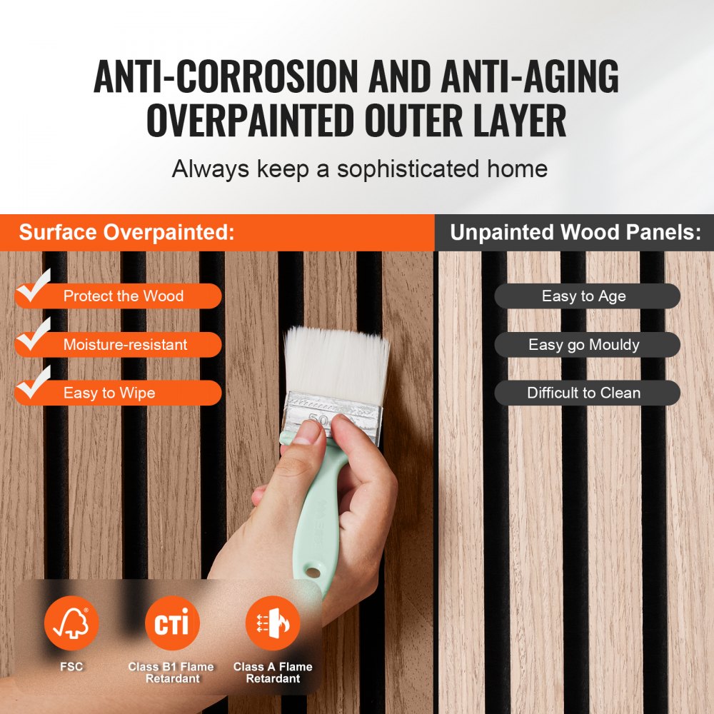 Powłoka antystarzeniowa: Zewnętrzna warstwa pokryta jest powłoką odporną na korozję i starzenie, spełniającą normy bezpieczeństwa pożarowego FSC i B1. To nie tylko zwiększa trwałość drewna, ale także zapewnia doskonałe bezpieczeństwo w domu i ułatwia codzienne czyszczenie.
