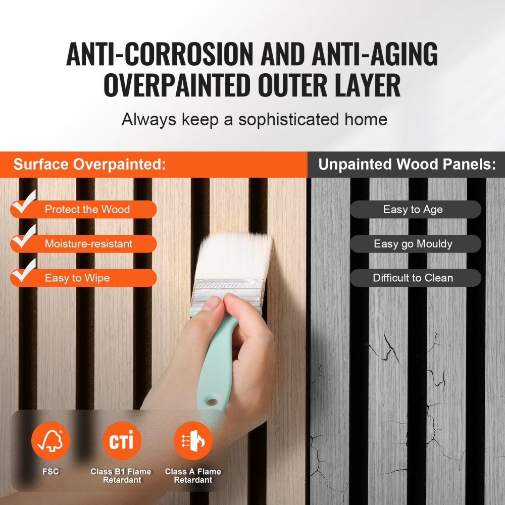 Panele akustyczne VEVOR, 2400 x 200 x 21 mm, akustyczne panele ścienne, drewniane panele ścienne z MDF do nowoczesnych dekoracji ściennych, akustyczne panele ścienne imitujące drewno do redukcji hałasu, zestaw 4 szt.
