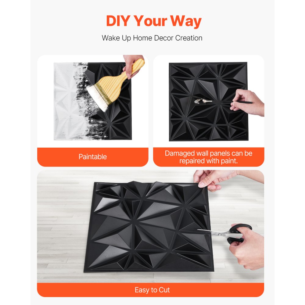 Panele ścienne VEVOR 3D, zestaw 33 sztuk, 30x30 cm, PVC, nowoczesna, minimalistyczna okładzina ścienna, 2,97 m², dekoracja ścienna, aranżacja wnętrz na sufit, do sypialni, salonu i pokoju zabaw, matowa czerń