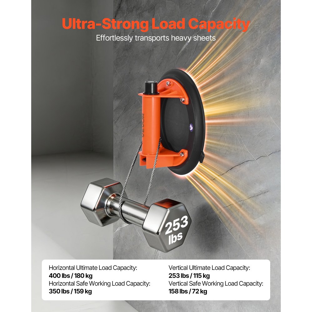 Profesjonalny podnośnik przyssawkowy o średnicy 203 mm: Ten podnośnik przyssawkowy chwyta płaskie, czyste, gładkie i nieporowate powierzchnie, zapewniając pewny i trwały chwyt. Pomaga podnosić szkło, płytki, plastik, blachy i kamień, ułatwiając i zwiększając bezpieczeństwo pracy.