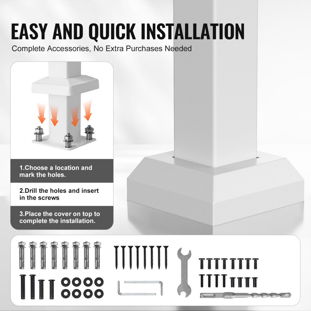 Poręcze schodowe zewnętrzne VEVOR, zestaw poręczy schodowych 1-2 stopni, balustrada przejściowa ze stali węglowej z zestawem montażowym, poręcz schodowa dla seniorów, schody betonowe i na werandę i taras, biały łuk retro