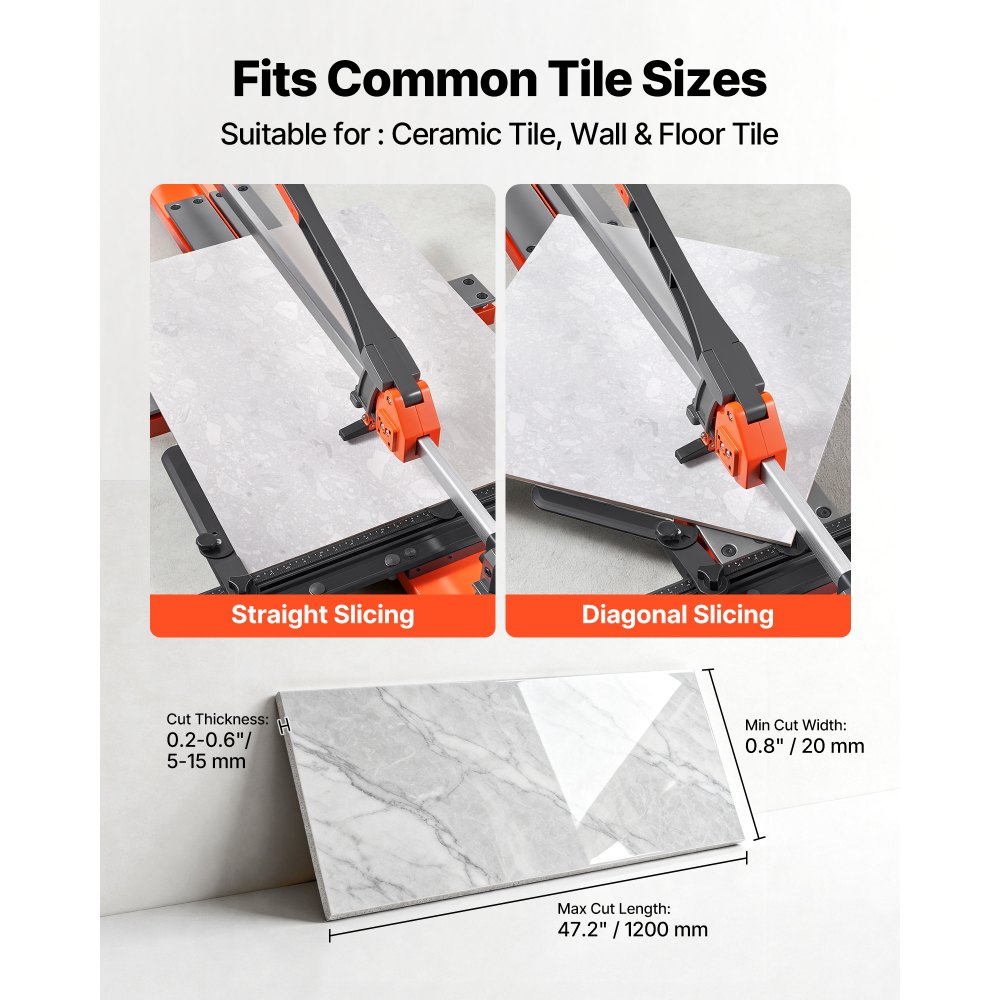 Przecinarka do płytek VEVOR 1200 mm, maszyna do cięcia płytek z podstawą sprężynową i regulowanym ogranicznikiem kąta, tarcza tnąca z węglika wolframu, precyzyjne narzędzie do wyrównywania, do płytek ceramicznych