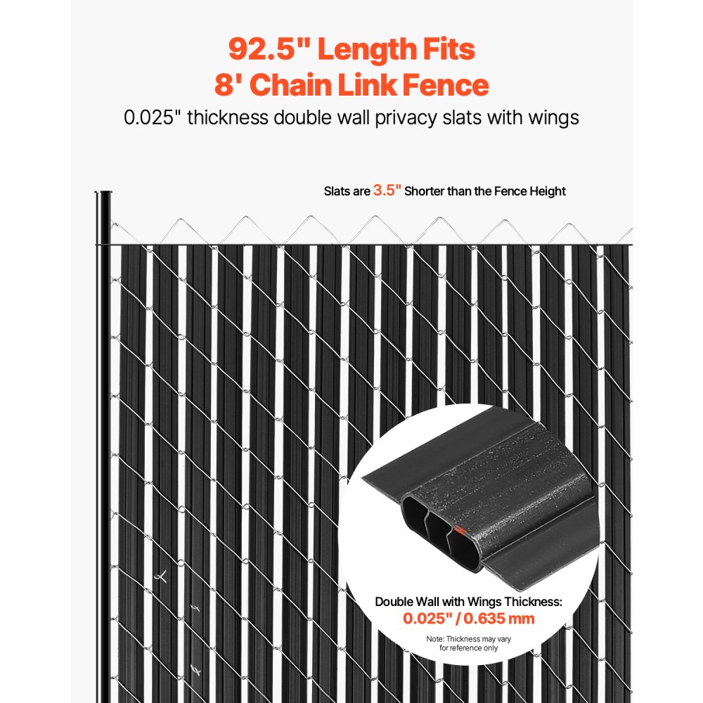 Siatki ochronne VEVOR 2350 mm, pionowe listwy z podwójnymi ściankami, z blokadą w podłożu i skrzydełkami do ogrodzeń z siatki łańcuszkowej, listwy z siatki HDPE, idealne do ogrodu i gospodarstwa (czarne)