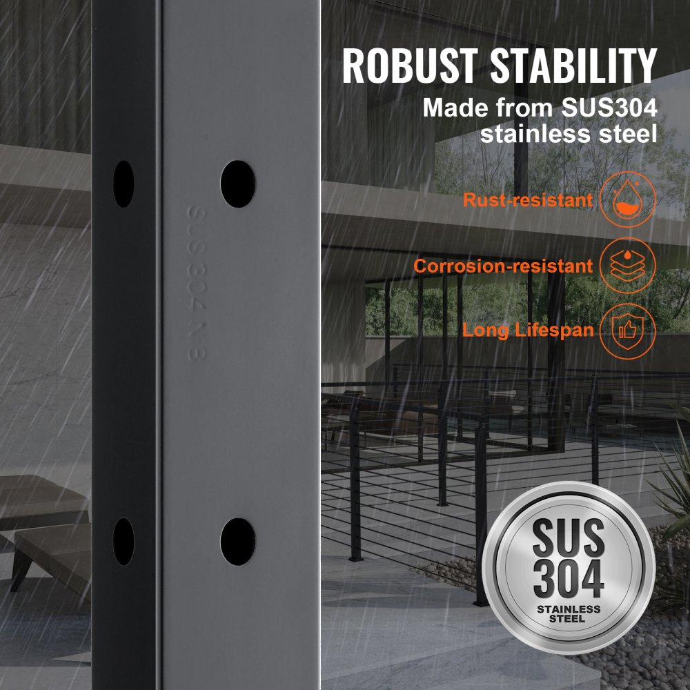 Solidny i trwały: Słupek poręczy kablowej wykonany jest z wysokiej jakości stali nierdzewnej SUS304 i zapewnia doskonałą odporność na rdzę i korozję, zapewniając długą żywotność. Nie zalecamy go jednak do projektów przybrzeżnych.