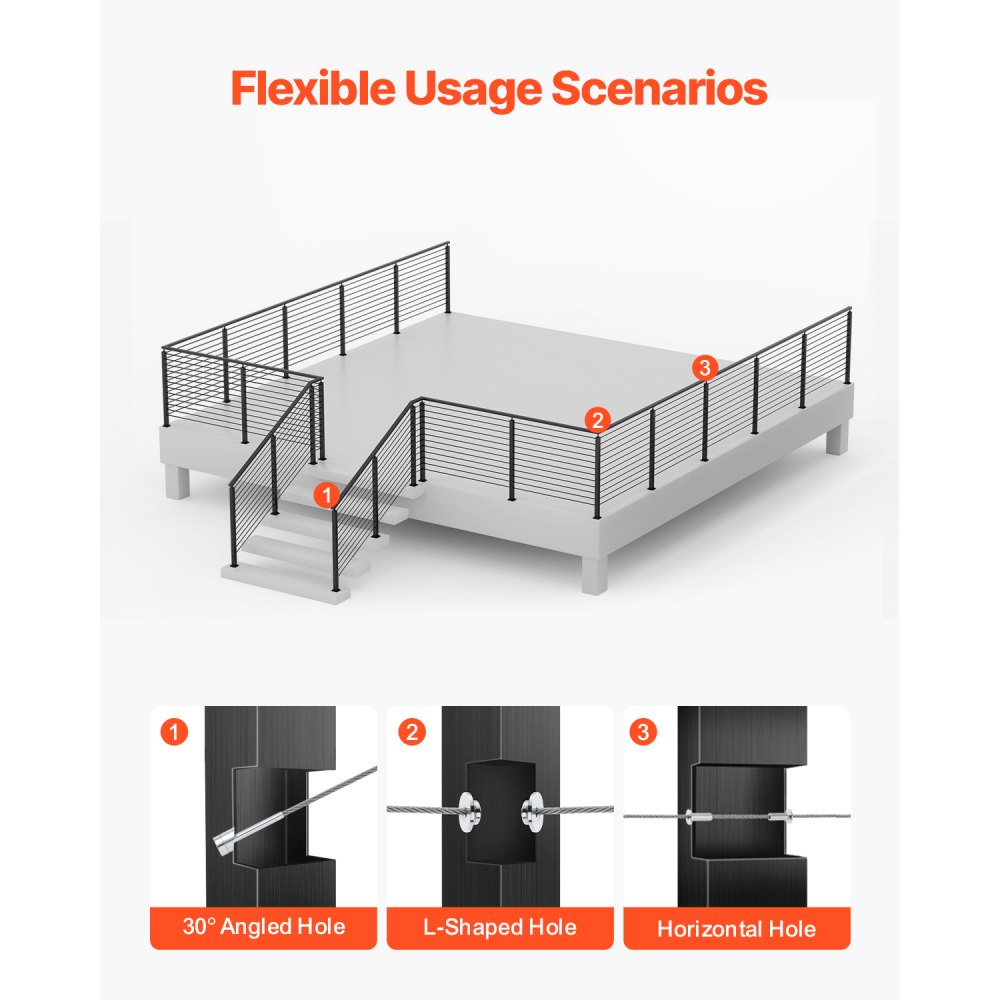 Ochrona w wielu miejscach: Nasze słupki do szyn kablowych nadają się do stosowania zarówno wewnątrz, jak i na zewnątrz, w tym na tarasach, schodach, gankach, ogrodzeniach, patio, balkonach, ogrodach, budynkach mieszkalnych, lokalach komercyjnych, hotelach, garażach i innych miejscach