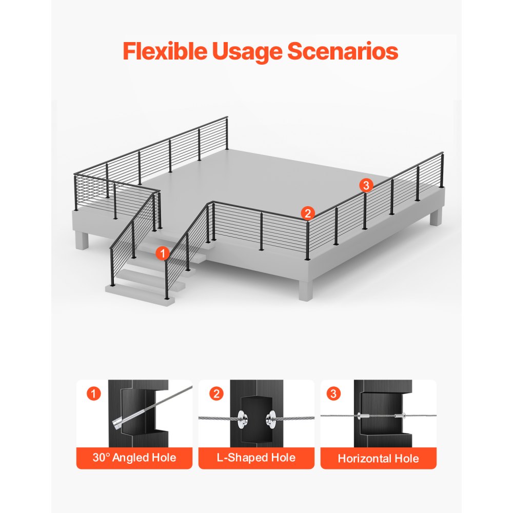 Ochrona w wielu miejscach: Nasze słupki do balustrad kablowych nadają się do ochrony wewnątrz i na zewnątrz, w tym tarasów, schodów, ganków, ogrodzeń, patio, balkonów, ogrodów, budynków mieszkalnych, biur komercyjnych, hoteli, garaży itp.