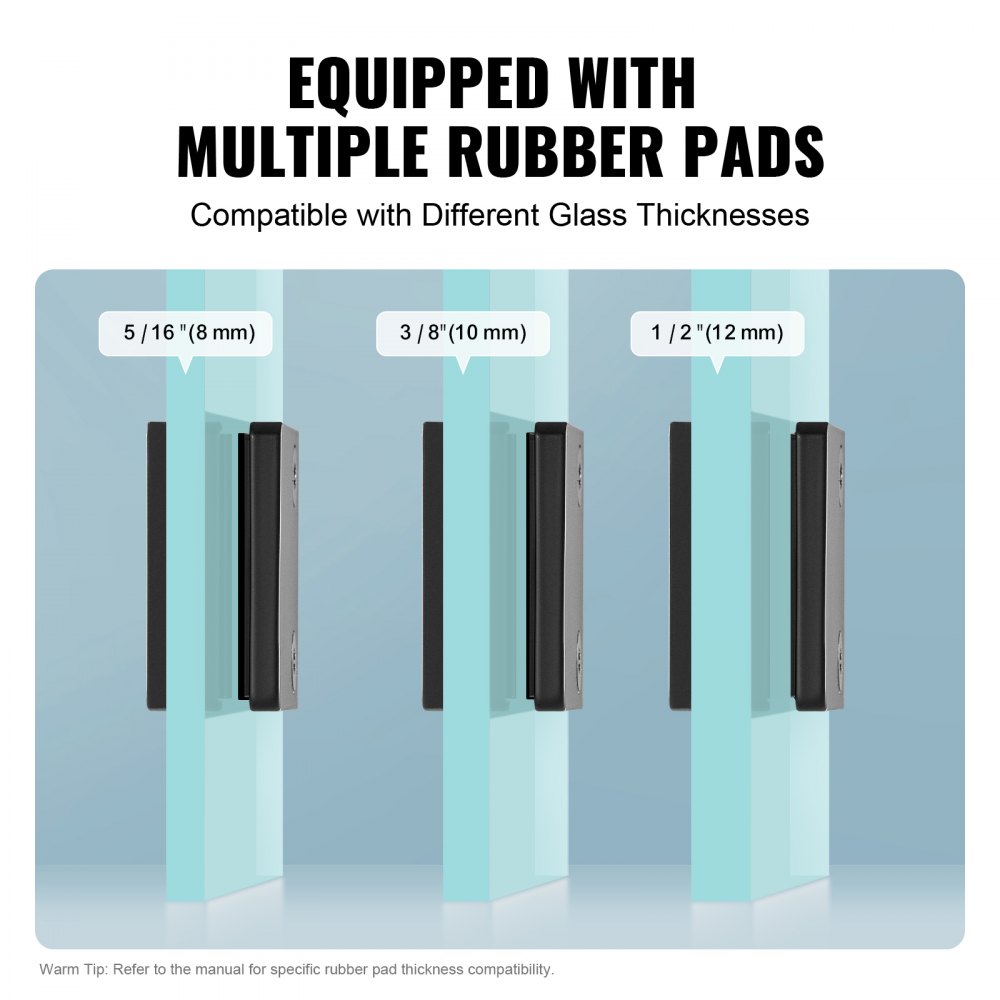 Wysoka kompatybilność: uchwyt do szkła zawiera trzy regulowane gumowe podkładki pasujące do szkła o rozmiarach 5/16 cala (8 mm), 3/8 cala (10 mm) i 1/2 cala (12 mm), dzięki czemu możesz dostosować go do swoich potrzeb.