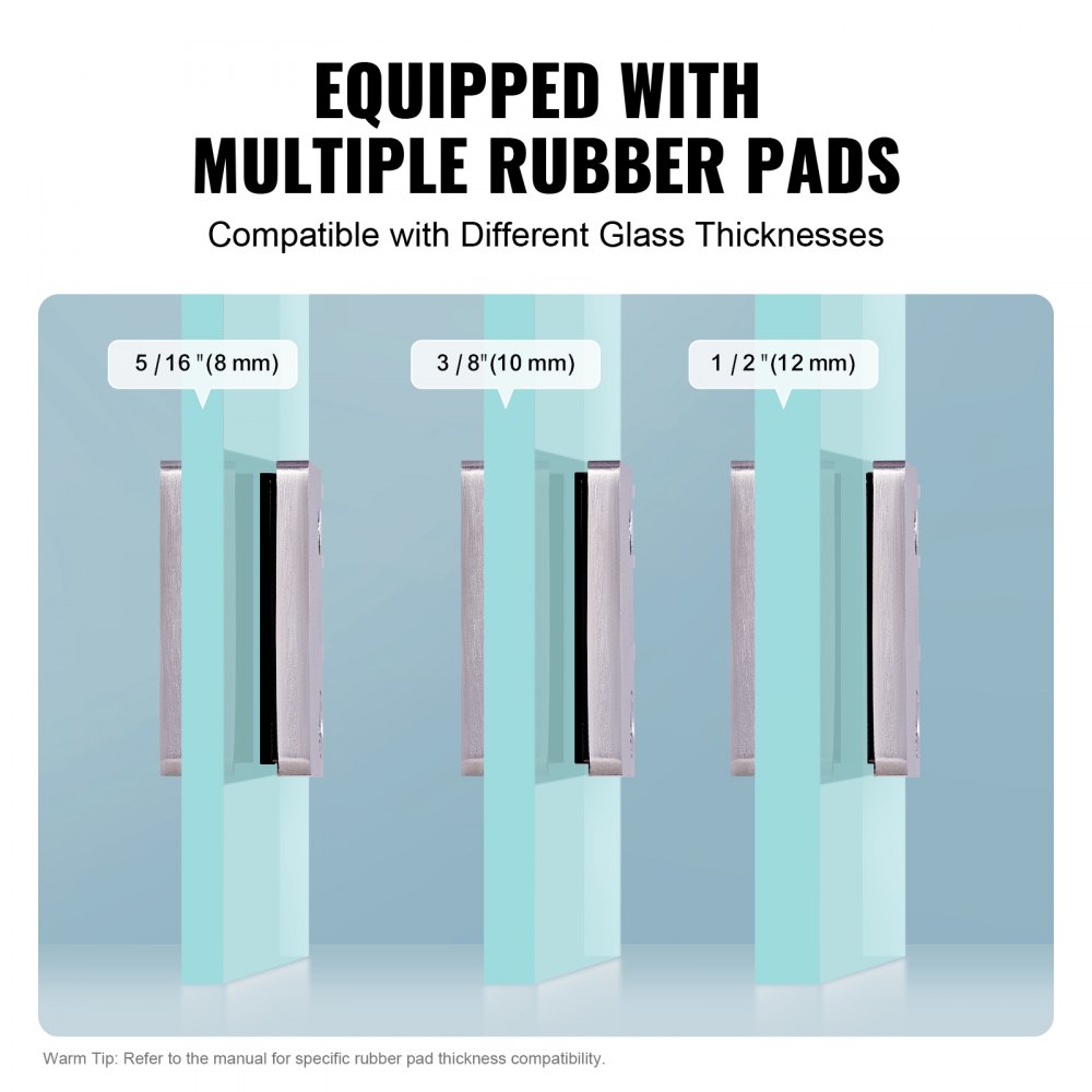Wysoka kompatybilność: uchwyt do szkła zawiera trzy regulowane gumowe podkładki pasujące do szkła o rozmiarach 5/16 cala (8 mm), 3/8 cala (10 mm) i 1/2 cala (12 mm), dzięki czemu możesz dostosować go do swoich potrzeb.