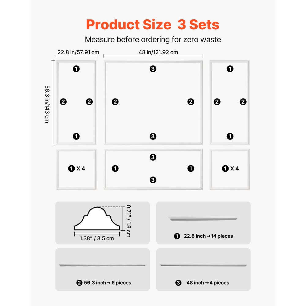 Zestaw listew ściennych VEVOR, 3 sztuki, 57,91/121,92/143 cm, listwy gzymsowe z polistyrenu do malowania, wodoodporna listwa ścienna, dekoracyjna listwa ścienna, listwa fryzowa do salonu, sypialni, domu, biała - Budownictwo i konstrukcje | Galaxy Sklep