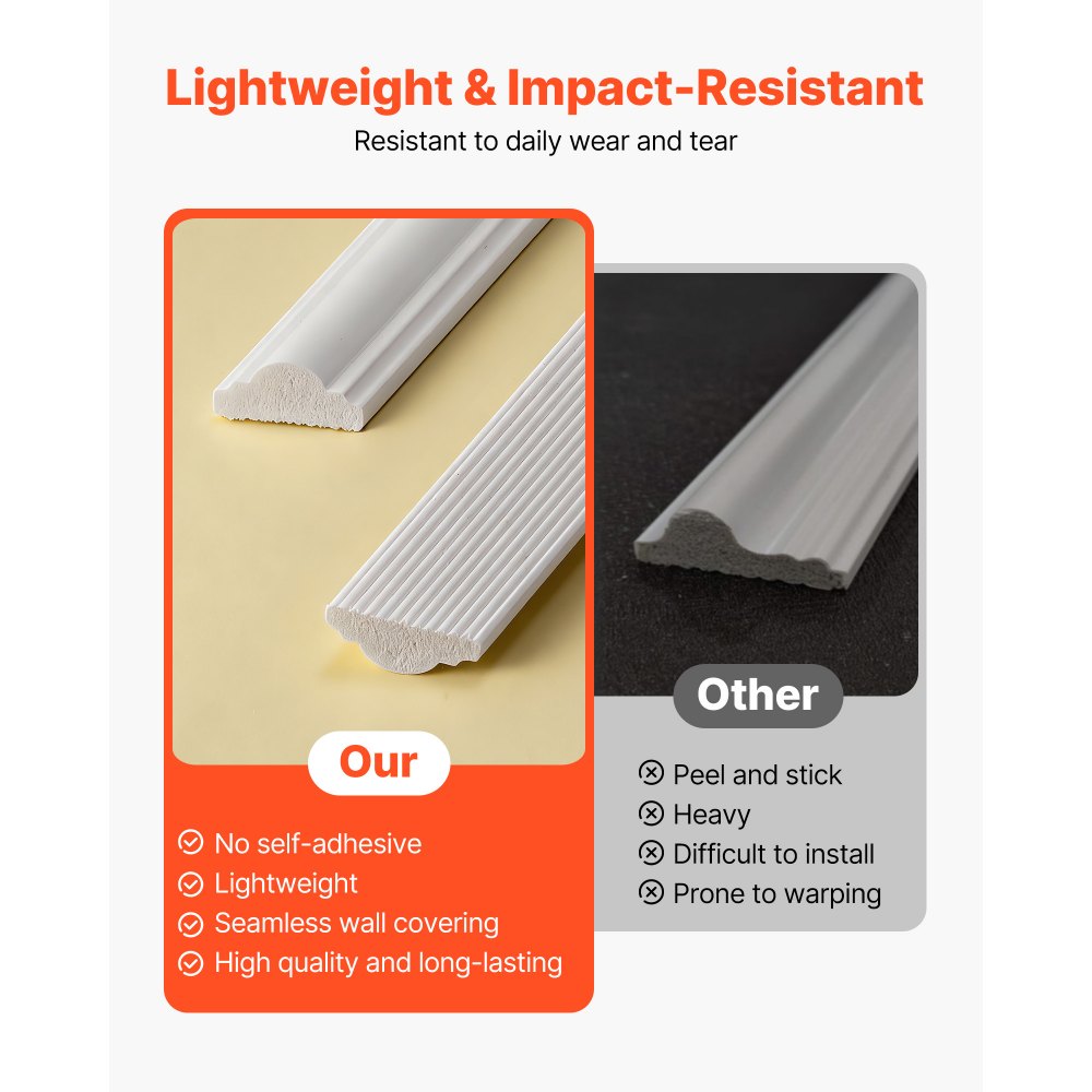 Zestaw listew ściennych VEVOR, 3 sztuki, 61 x 61 cm i 61 x 138 cm, listwy gzymsowe z polistyrenu do malowania, wodoodporna listwa ścienna, dekoracyjna listwa ścienna, listwa fryzowa do salonu, sypialni, domu, biała