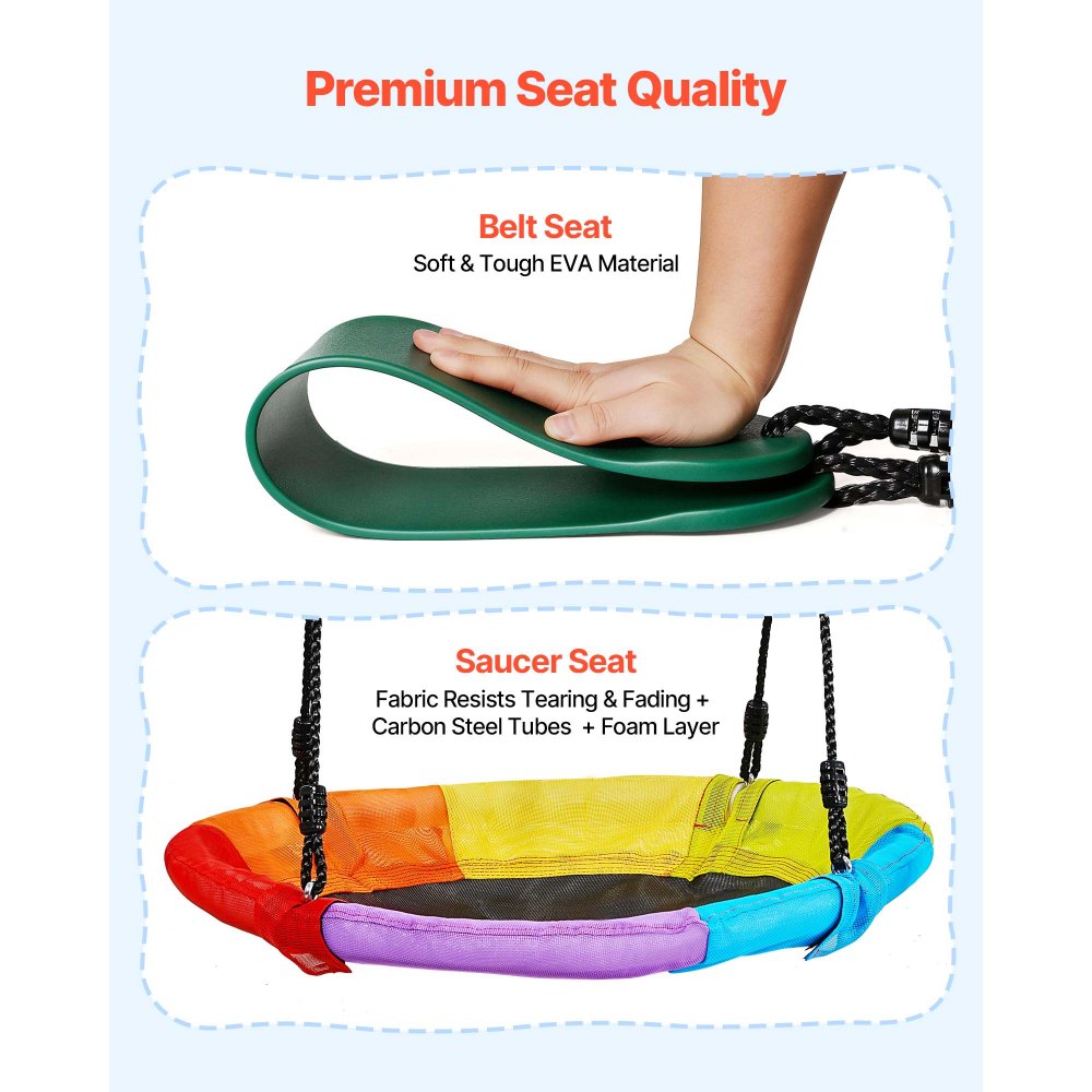 Huśtawka ogrodowa VEVOR z metalową podstawą w kształcie litery A, podwójna huśtawka (1 huśtawka talerzykowa i 1 huśtawka pasowa), nośność do 199,6 kg, zestaw huśtawek zewnętrznych, wzmocniony spiralnymi kotwami gruntowymi