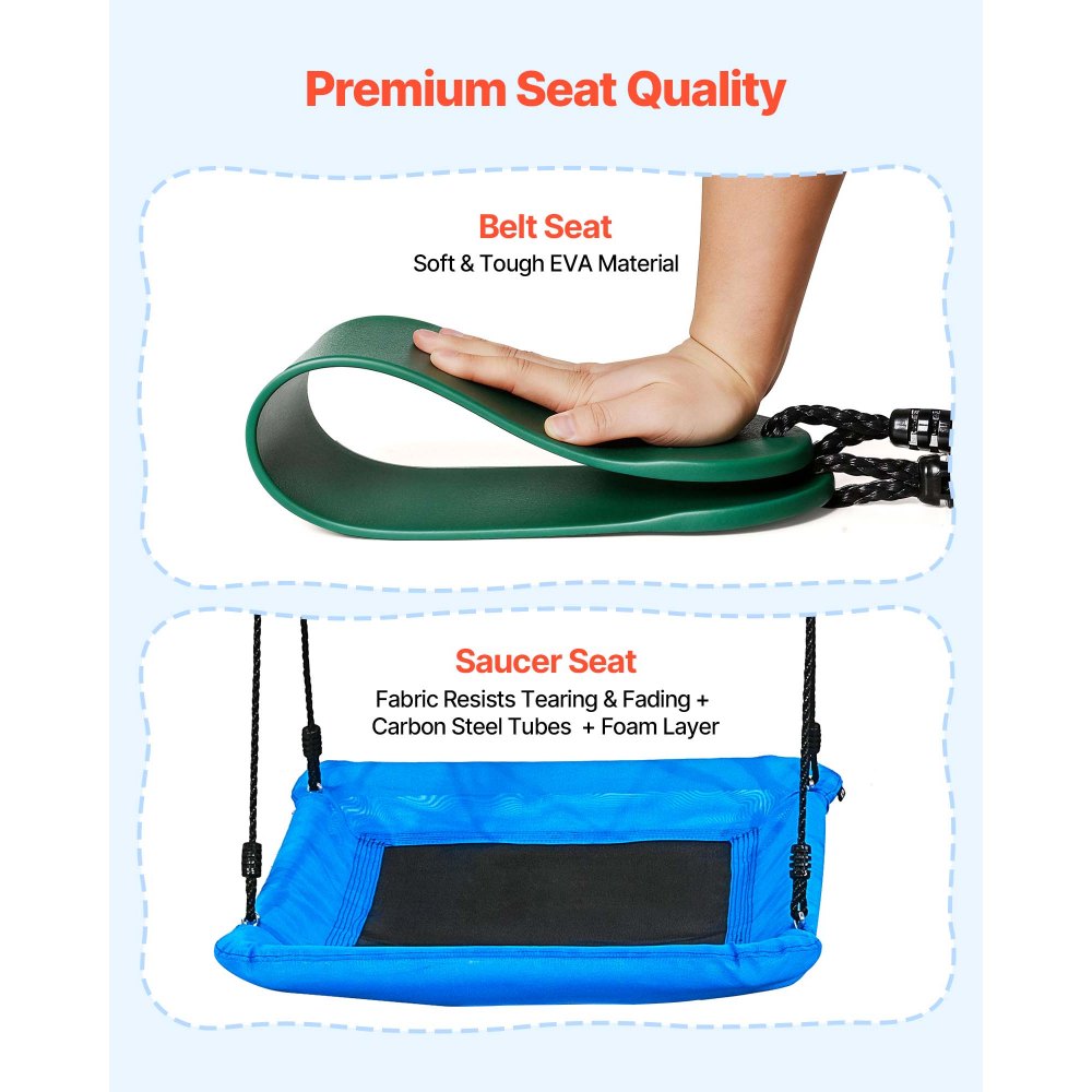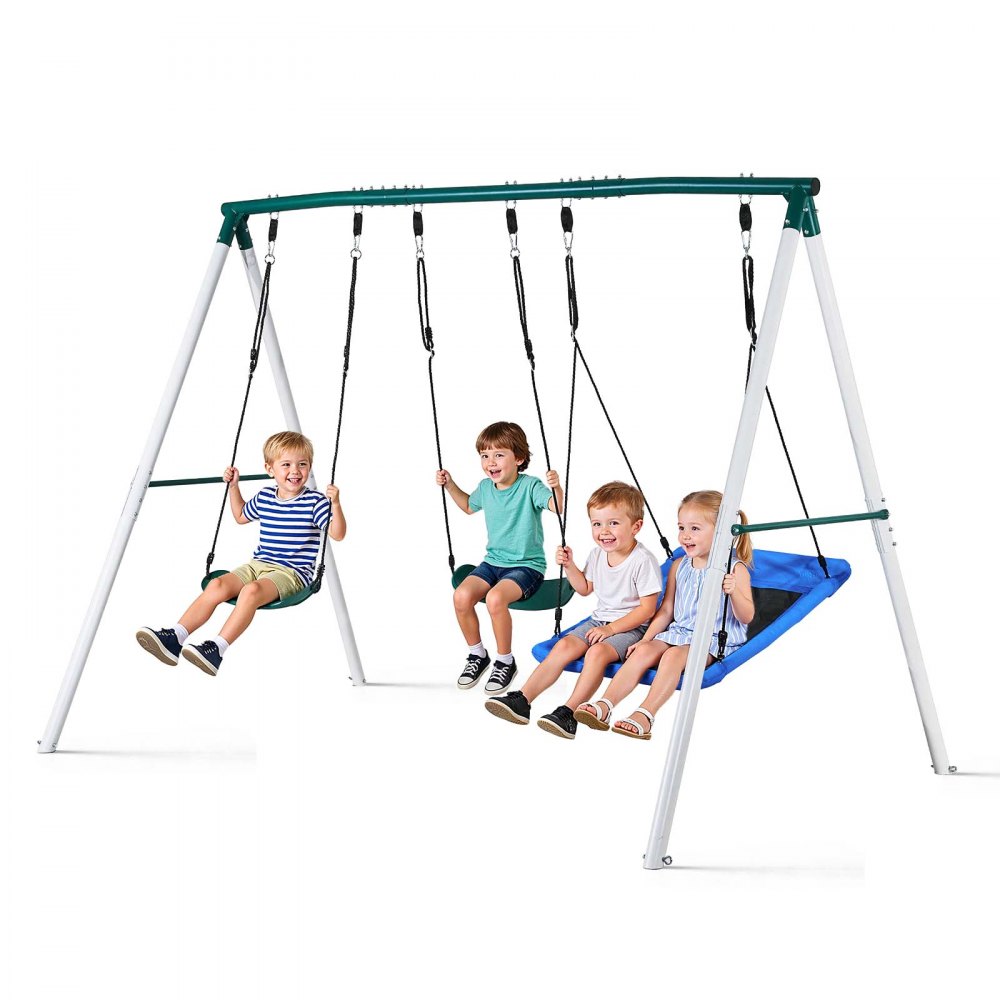 Huśtawka ogrodowa VEVOR z metalową ramą w kształcie litery A i dwoma pasami bezpieczeństwa, siedziskiem huśtawki (110 x 80 cm), nośność do 318 kg, zestaw huśtawek zewnętrznych, wzmocniona spiralnymi kotwami gruntowymi - Dzieci i zabawki | Galaxy Sklep