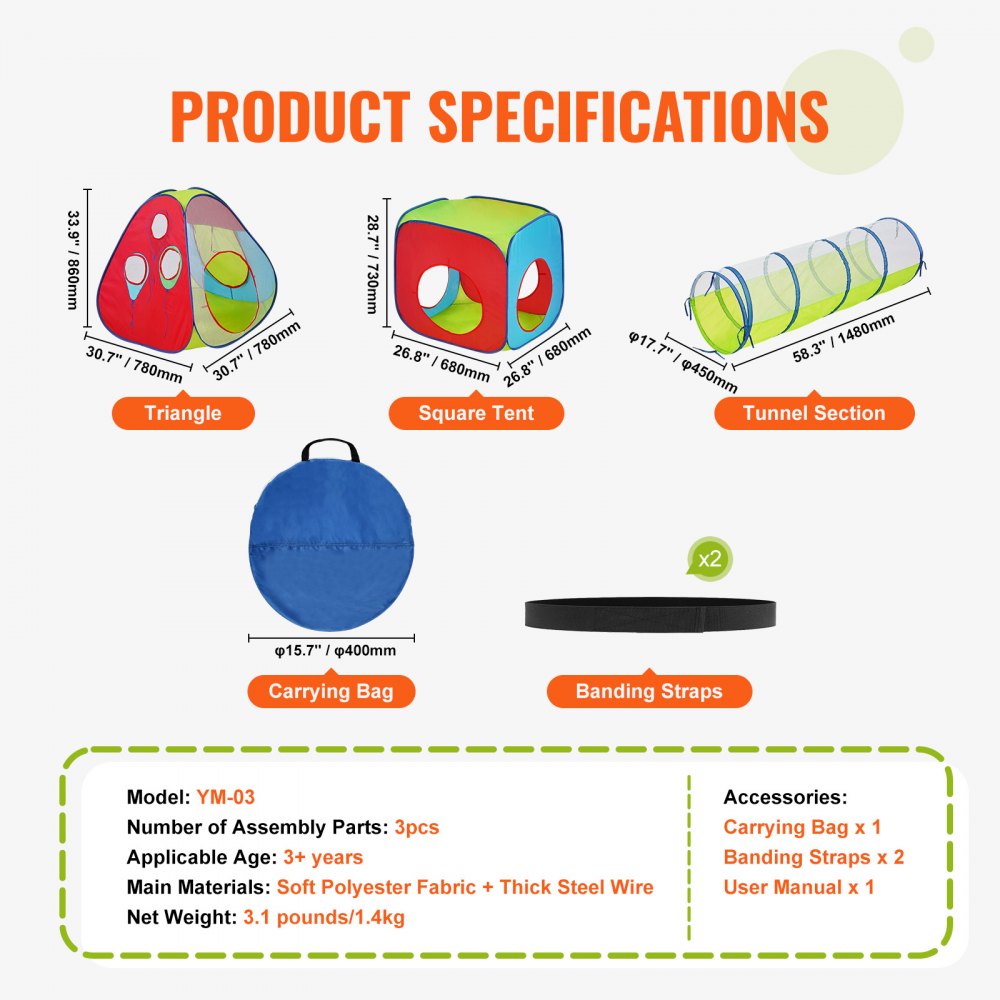 Pobudza wyobraźnię: Żywe i jaskrawe kolory przyciągają uwagę dzieci i pobudzają ich wyobraźnię. Dzięki 3-częściowej konstrukcji, dzieci mogą swobodnie bawić się w tunelu namiotu, gonić, raczkować lub bawić się w chowanego. To stymuluje rozwój mózgu dziecka i zapewnia niekończącą się zabawę!