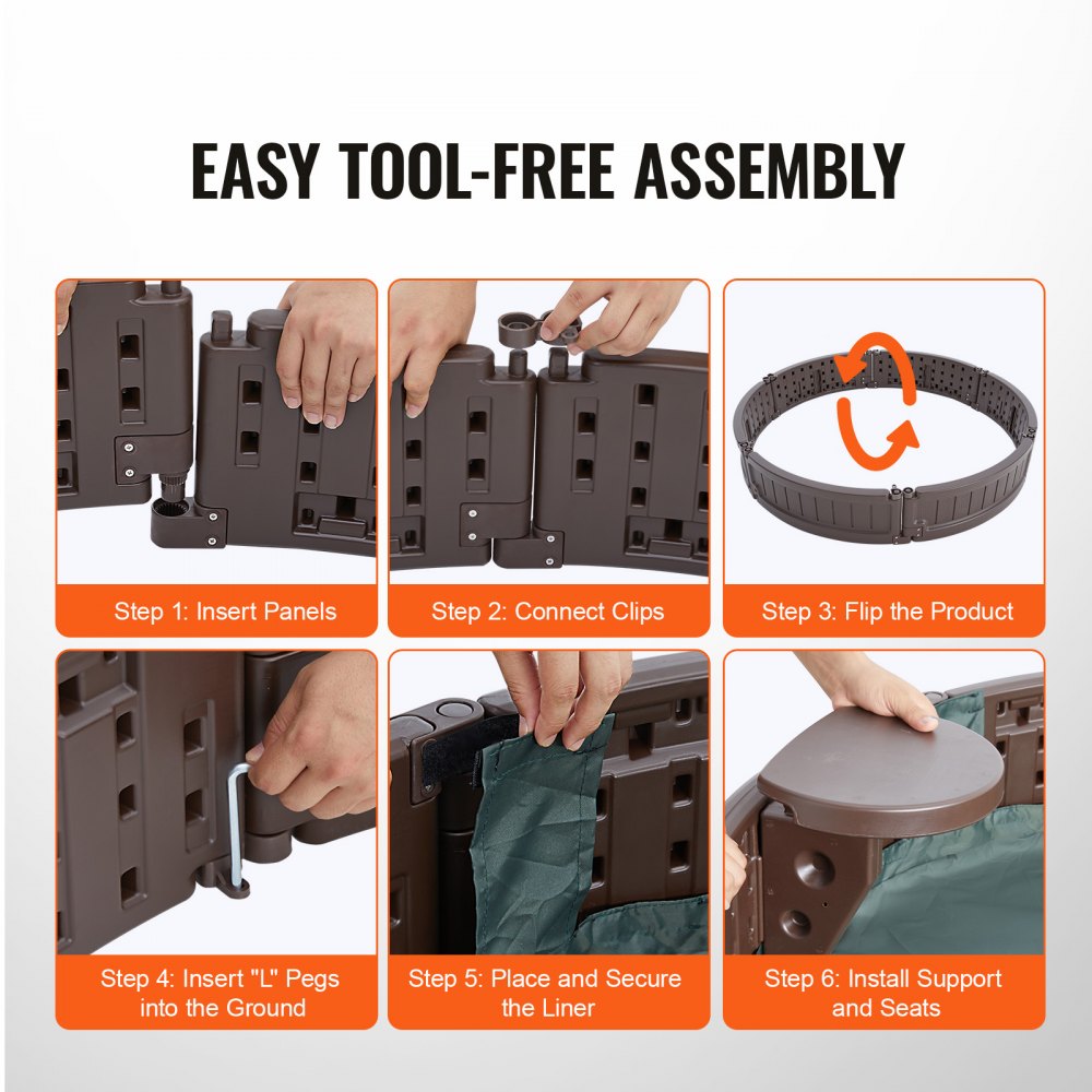 Łatwy montaż: Naszą piaskownicę dla dzieci można łatwo zmontować bez użycia narzędzi. Wystarczy wsunąć panele w szczeliny, włożyć wkład i przymocować siedziska. W zestawie znajduje się przejrzysta instrukcja montażu, dzięki czemu w mgnieniu oka stworzysz idealny plac zabaw dla dzieci.