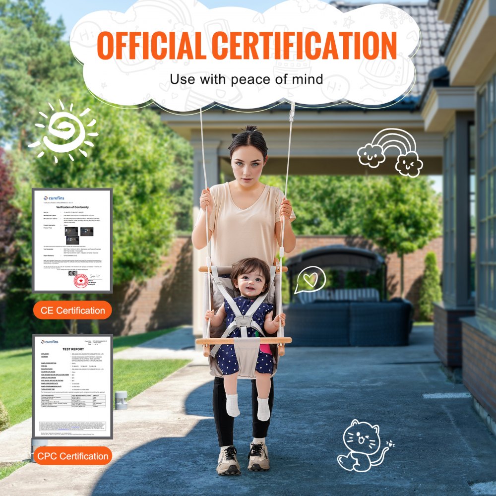 Certyfikowane bezpieczeństwo: Nasze huśtawki dla niemowląt i małych dzieci posiadają certyfikat CE/CPC, co gwarantuje bezpieczeństwo. Bezpieczeństwo jest naszym priorytetem podczas zabawy dzieci. Nie musisz martwić się o jakość.