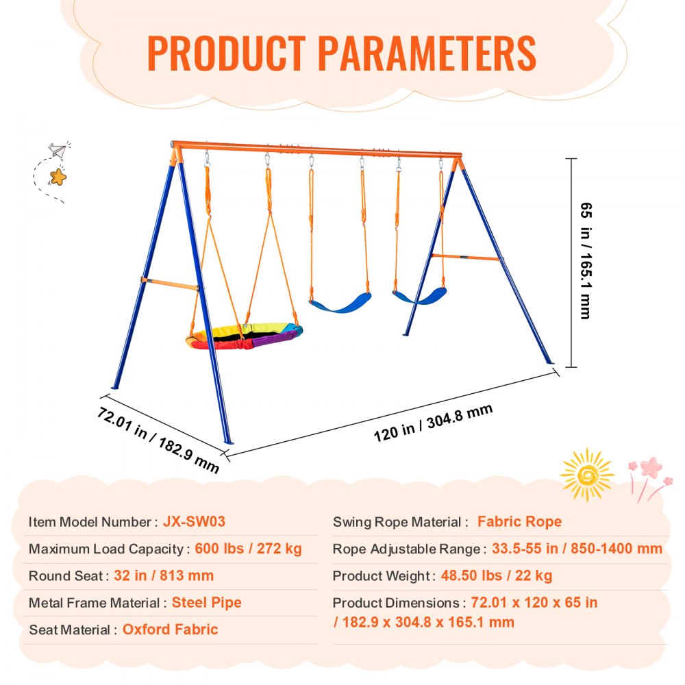 Zestawy huśtawek ogrodowych VEVOR, zestaw huśtawek o udźwigu 272 kg z 1 siedziskiem, 2 siedziskami z paskami, solidnym metalowym stojakiem w kształcie litery A i regulowaną liną, zestaw huśtawek ogrodowych dla dzieci - Dzieci i zabawki | Galaxy Sklep