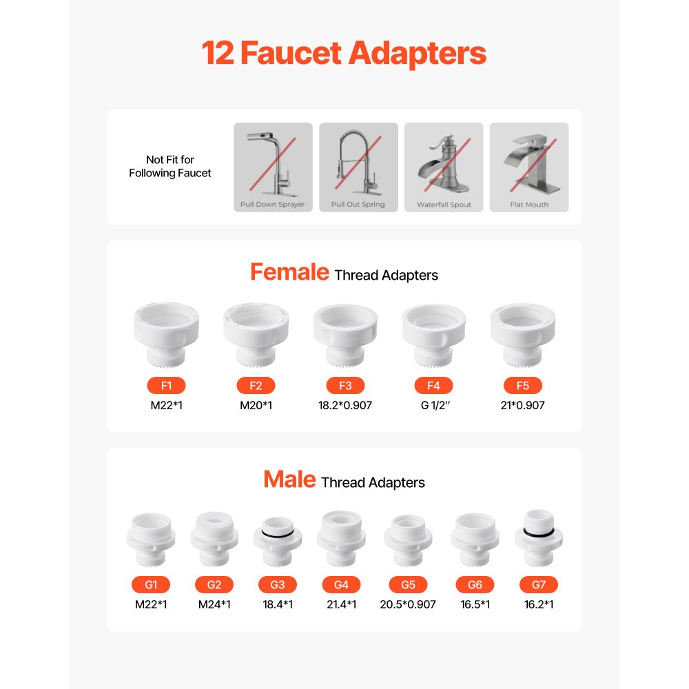 Łatwa instalacja: Filtr do wody montowany na kranie jest dostarczany z 12 adapterami, dzięki czemu możesz wybrać odpowiedni do swoich potrzeb. Dzięki dołączonym, łatwym w montażu narzędziom, konfiguracja zajmuje zaledwie 5 minut.