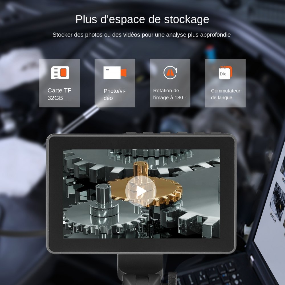Dłuższa praca i większa pojemność pamięci masowej: Nasza kamera inspekcyjna z baterią o dużej pojemności 4500 mAh może obsługiwać do 4-6 godzin ciągłej pracy. Interfejs typu C jest łatwy do podłączenia i odłączenia. Po zakończeniu wystarczy naładować urządzenie za pomocą dołączonej ładowarki USB. Dołączamy również kartę TF o pojemności 32 GB do przechowywania obrazów i filmów wideo w celu dalszej analizy.