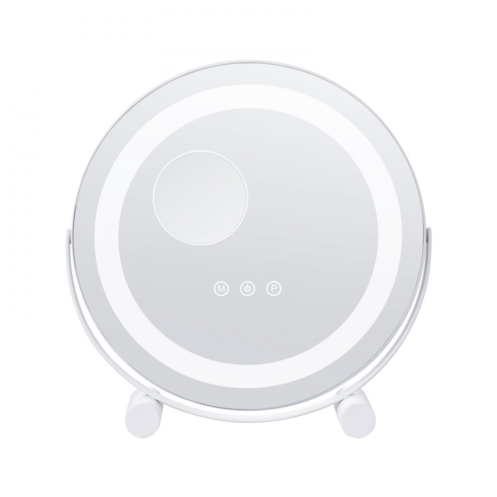 Lustro kosmetyczne VEVOR 310 mm z oświetleniem LED, 3 tryby oświetlenia, 5-krotne powiększenie, inteligentne sterowanie dotykowe, obrót o 360°, lustro do makijażu na stolik w sypialni (białe) - Instalacja wodociągowa | Galaxy Sklep