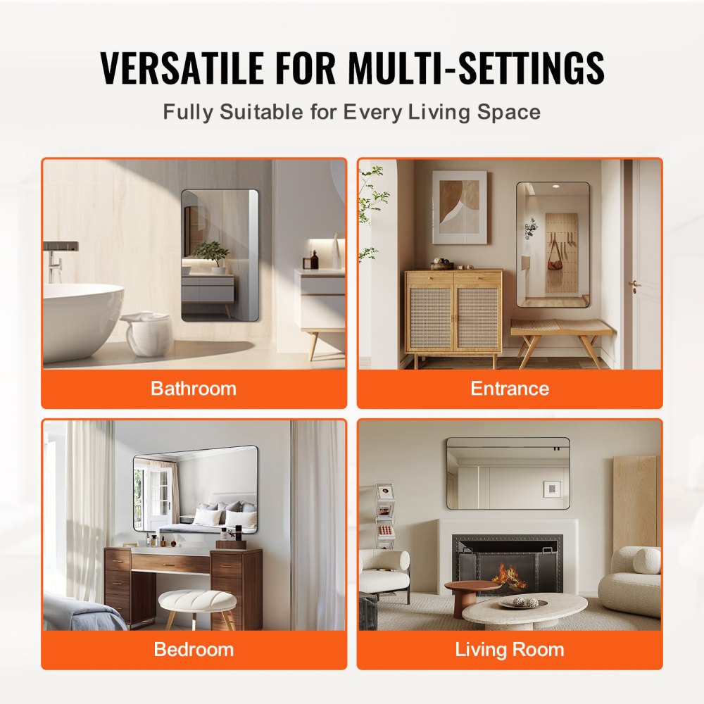 Lustro ścienne VEVOR Lustro do makijażu Lustro łazienkowe 1219 x 762 x 25 mm Lustro prostokątne, rama ze stopu aluminium w kolorze czarnym, z uchwytem w kształcie litery Z do łazienki, sypialni, salonu