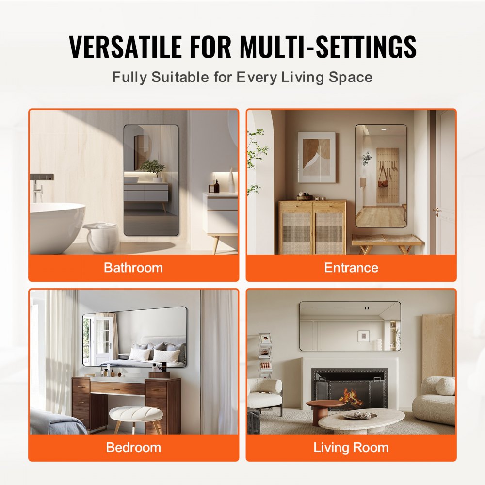 Lustro ścienne VEVOR Lustro do makijażu Lustro łazienkowe 1828 x 915 x 25 mm Czarna rama Lustro ze stopu aluminium z uchwytem w kształcie litery Z Nadaje się do łazienki, sypialni, salonu
