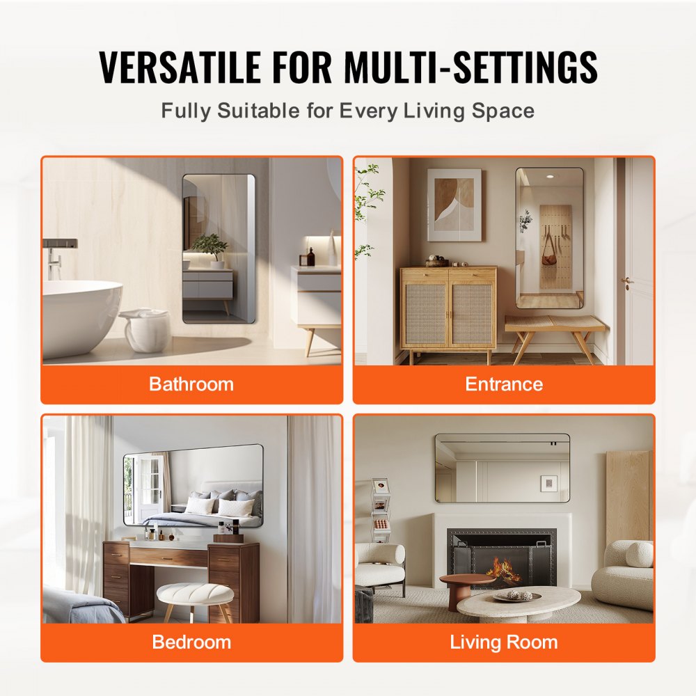 Lustro ścienne VEVOR Lustro do makijażu Lustro łazienkowe 915 x 610 x 25 mm Lustro prostokątne, rama ze stopu aluminium w kolorze czarnym, z uchwytem w kształcie litery Z do łazienki, sypialni, salonu - Instalacja wodociągowa | Galaxy Sklep