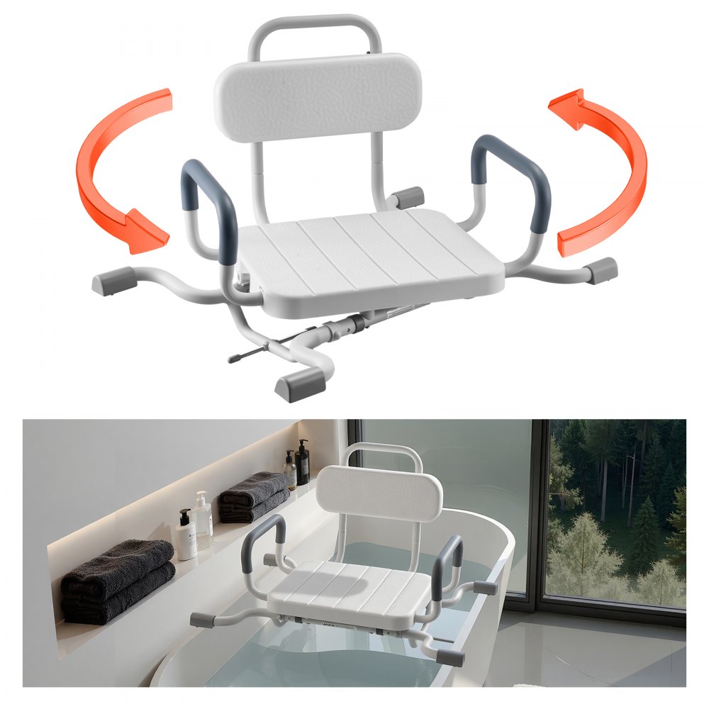 Obrotowy fotel prysznicowy z podłokietnikami i oparciem, udźwig do 100 kg, obrotowe siedzisko do wanny, przeznaczone do kabiny prysznicowej, regulowane siedzisko do wanny dla seniorów i osób niepełnosprawnych - Instalacja wodociągowa | Galaxy Sklep