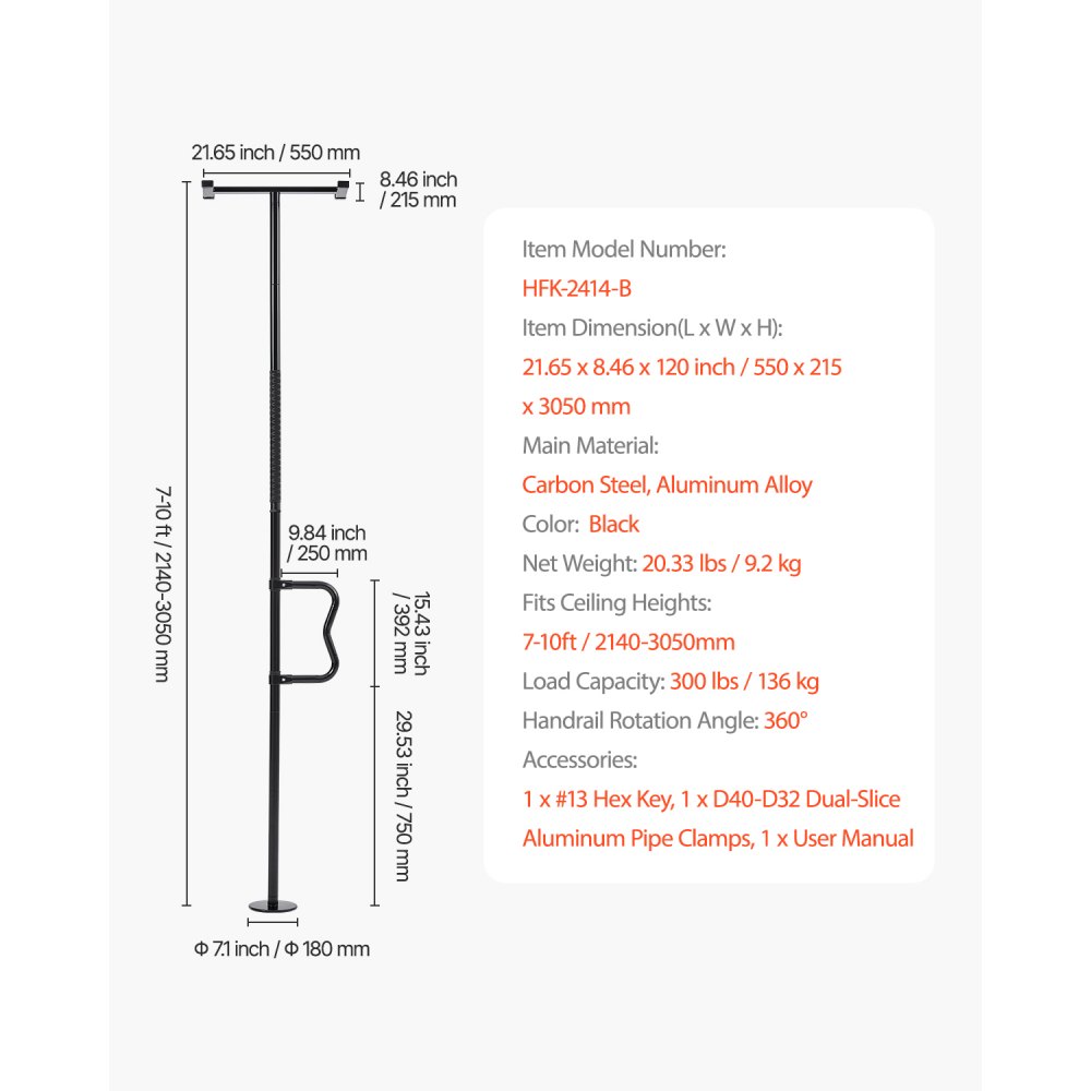 Nośność 136 kg: Ta stojąca na podłodze poręcz bezpieczeństwa wytrzymuje obciążenie do 136 kg. Dzięki grubym ściankom rur i przedłużonym poręczom zapewnia solidną powierzchnię podparcia, umożliwiając bezpieczne korzystanie z poręczy bezpieczeństwa w różnych miejscach