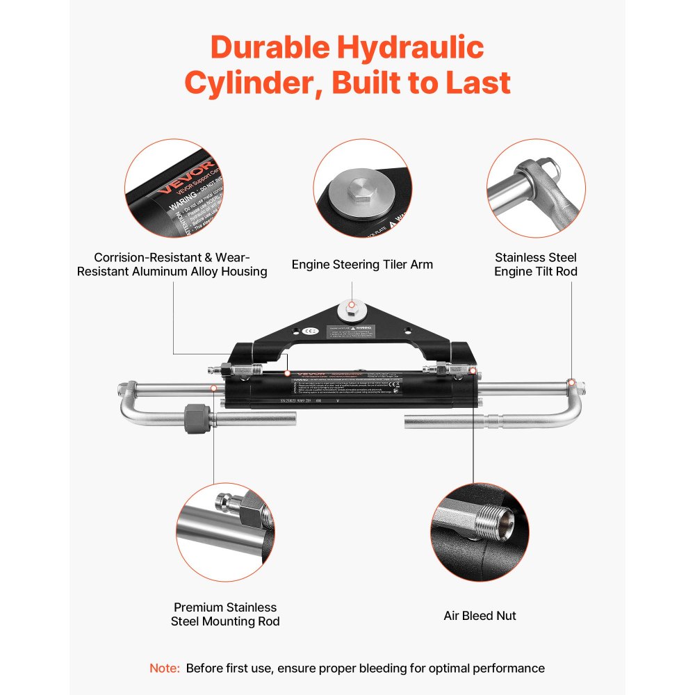 Wytrzymała i niezawodna pompa sterowa: Ten hydrauliczny zestaw do sterowania łodzią jest przeznaczony do ciśnienia 6,9 MPa/1000 psi i wyposażony jest w zawór zwrotny, otwór wlewowy, złączki ORB ze stali nierdzewnej oraz wymienny uszczelniacz wału. Obudowa ze stopu aluminium zapewnia długą żywotność.