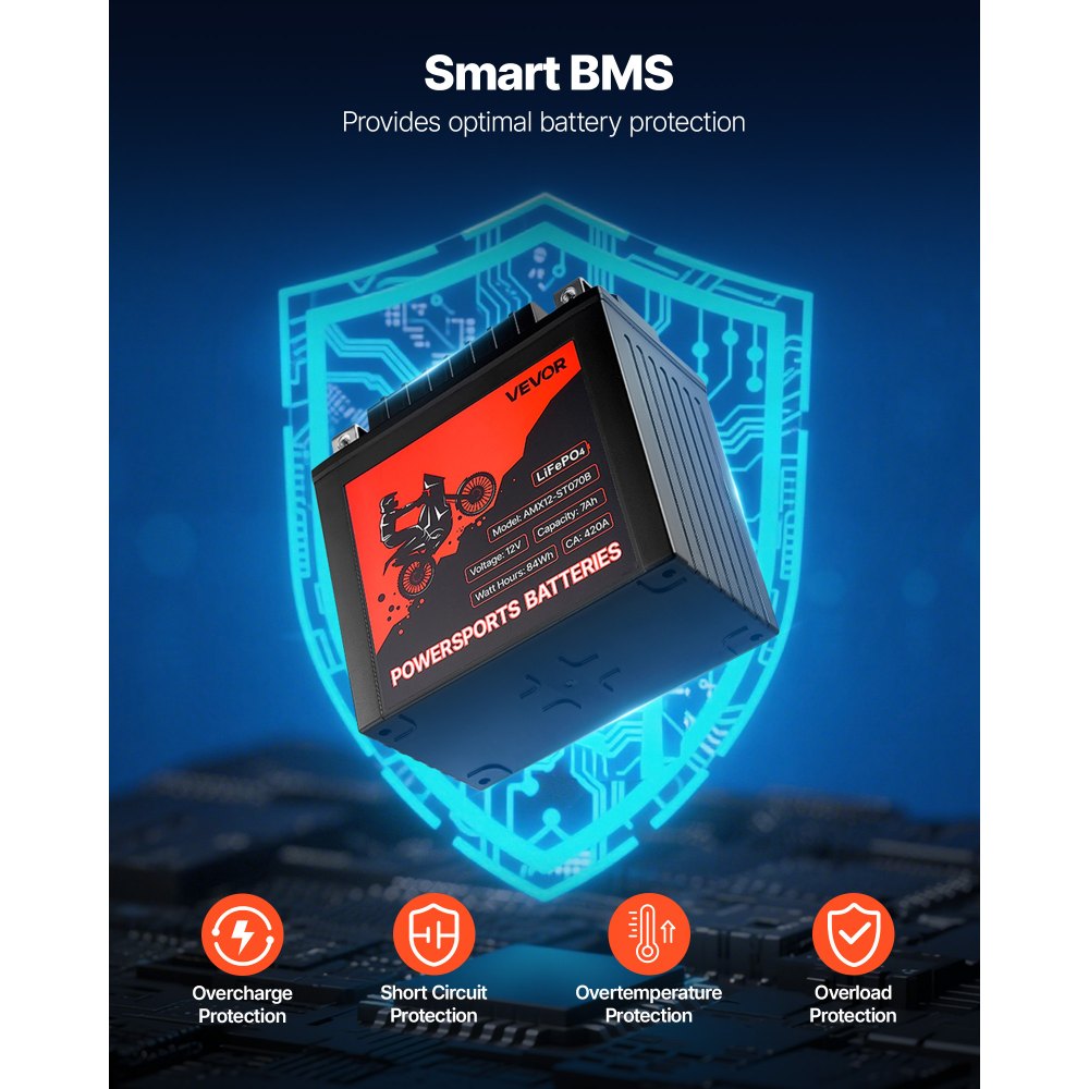 Bezpieczny i niezawodny: Wyposażony w inteligentny system BMS, który zapewnia ochronę przed przeładowaniem, zwarciem i przegrzaniem, ten uszczelniony akumulator do pojazdów sportowych zapobiega wyciekom kwasu. Jest bezpieczniejszy i bardziej niezawodny niż konwencjonalne akumulatory kwasowo-ołowiowe.