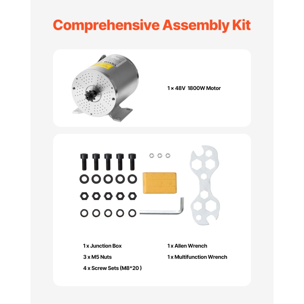 Silnik elektryczny bezszczotkowy VEVOR 1800 W DC, silnik elektryczny 48 V 4500 obr./min do gokarta, silnik elektryczny do motocykli terenowych, rowerów elektrycznych, skuterów i do majsterkowania - Inżynieria elektryczna | Galaxy Sklep