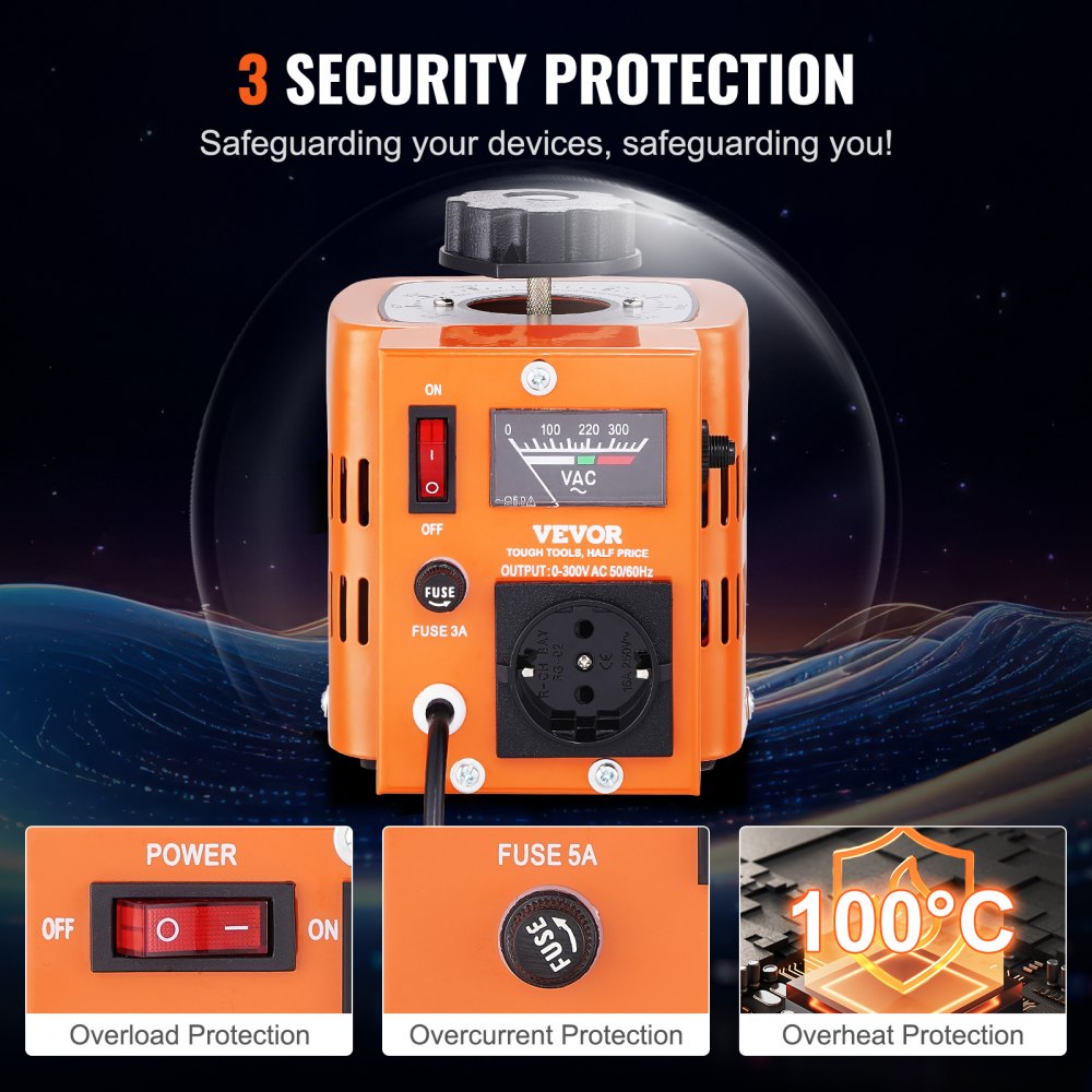 Transformator napięcia zmiennego VEVOR 500VA, wejście 1,7A, wyjście 230V, regulator napięcia prądu przemiennego 0-300V, z 4 dodatkowymi bezpiecznikami, przełącznik kontroli termicznej do użytku domowego, przemysłowego i biurowego. - Inżynieria elektryczna | Galaxy Sklep