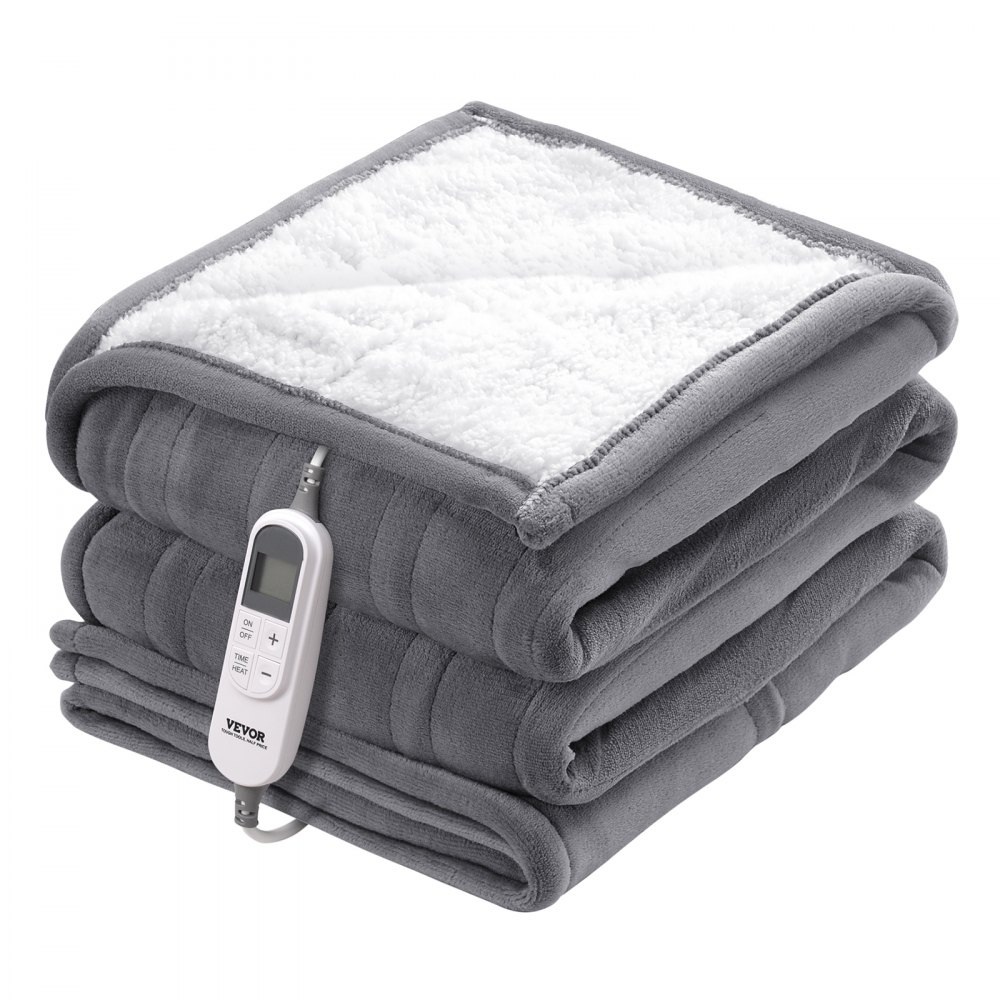 Koc elektryczny VEVOR, 130 x 160 cm, miękki flanelowy koc elektryczny z wełny jagnięcej, podgrzewany do łóżka z 9 ustawieniami czasu i 6 ustawieniami ogrzewania, ciepły koc jako prezent urodzinowy, szary - Klimatyzacja | Galaxy Sklep