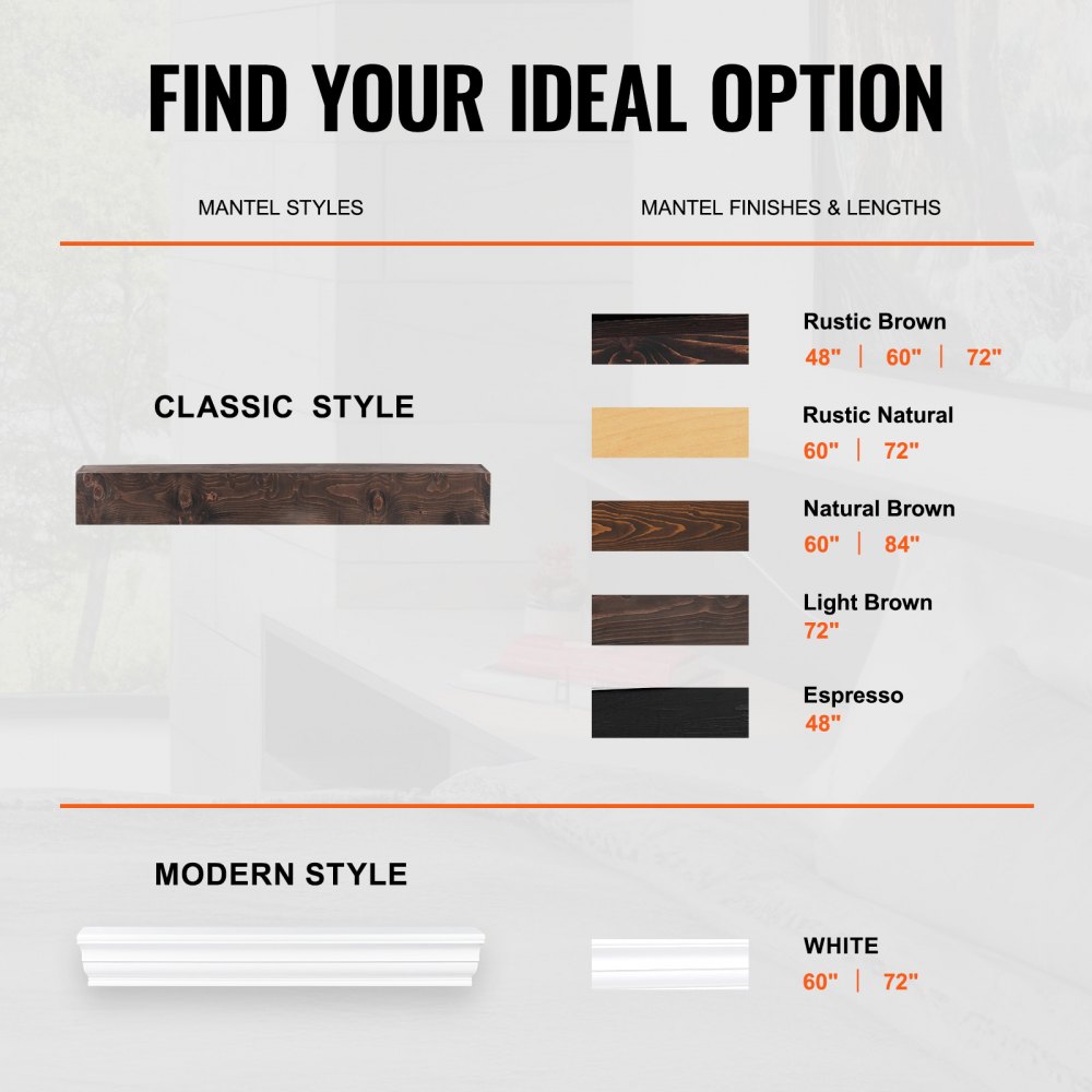 Poznaj swój kominek: Ta wisząca półka kominkowa jest dostępna w kolorze jasnobrązowym i ma długość 72 cali/182,8 cm. Jej udźwig wynosi 50 funtów/22,7 kg, co czyni ją wystarczająco wytrzymałą, aby wyeksponować Twoje ulubione przedmioty dekoracyjne, od zdjęć rodzinnych po cenne pamiątki.